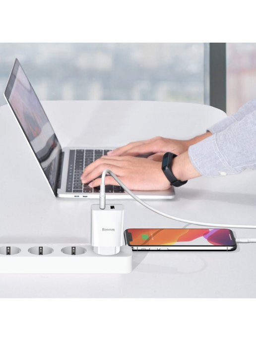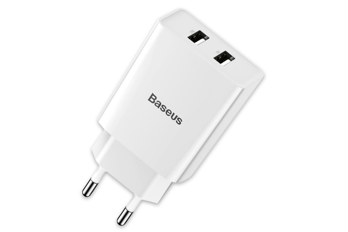 Сетевое зарядное устройство для телефона на 2 USB Baseus 10.5W 2A белая / Адаптер питания