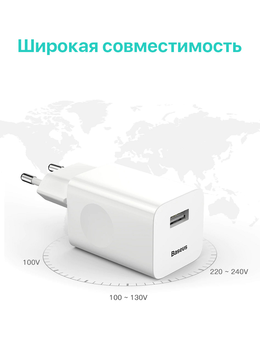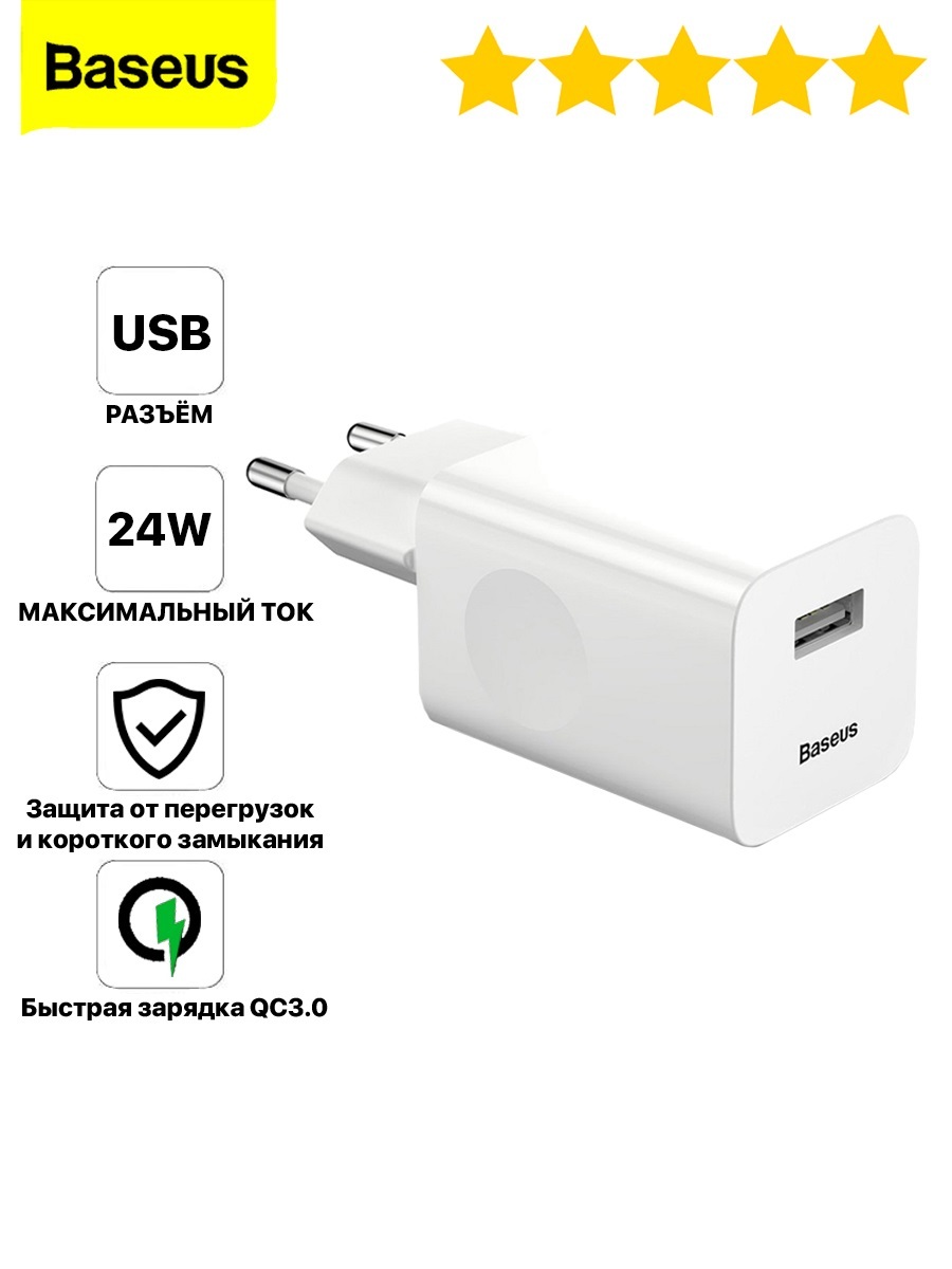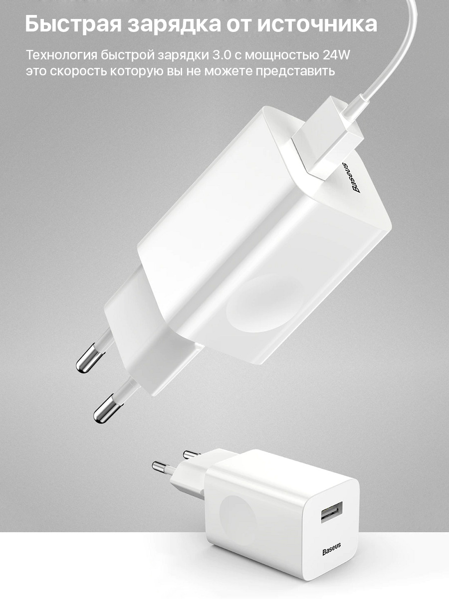 Сетевое зарядное устройство Baseus Quick Charger USB QC3.0 24W / Адаптер питания, белое