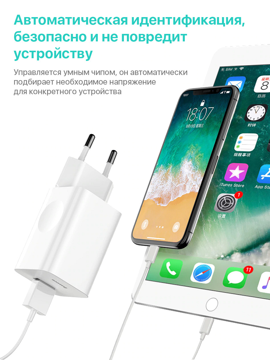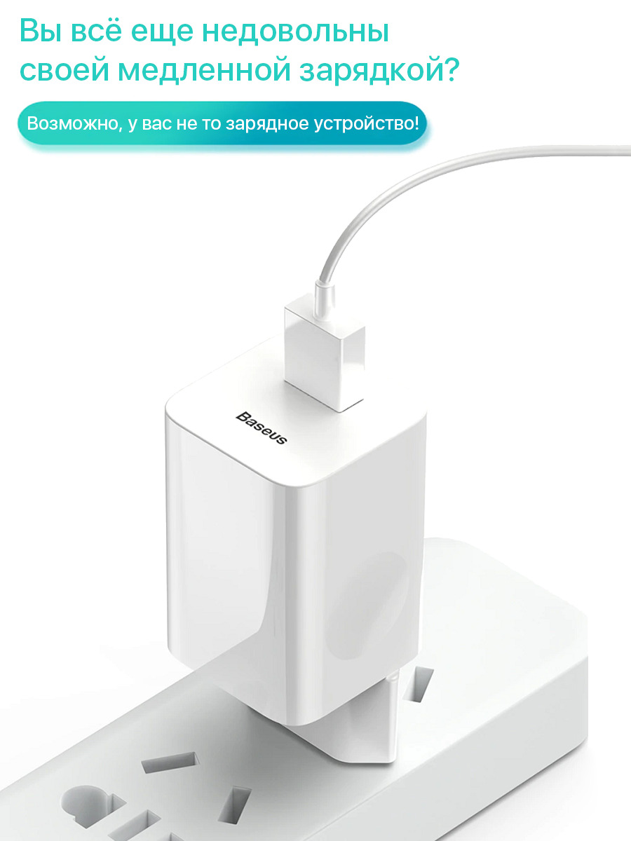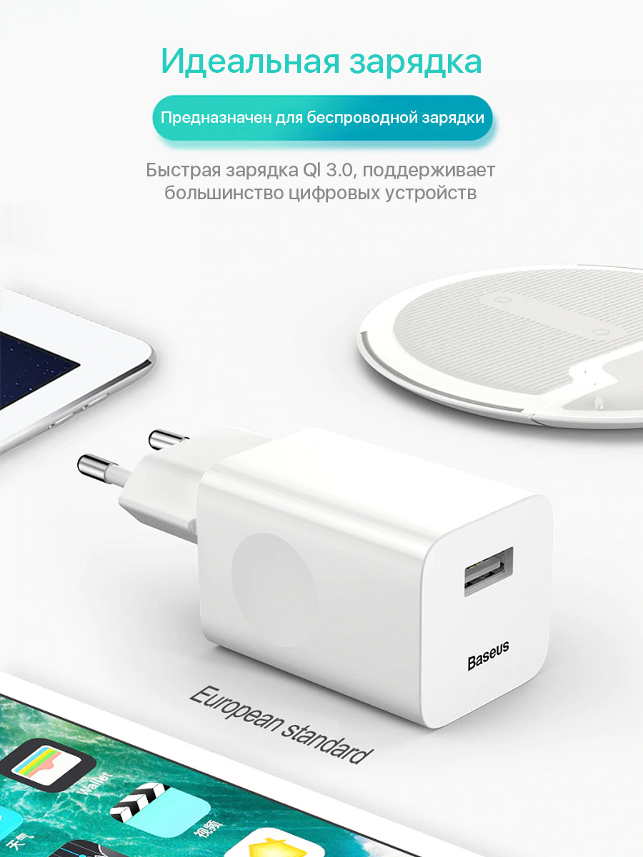 Сетевое зарядное устройство Baseus Quick Charger USB QC3.0 24W / Адаптер питания, белое