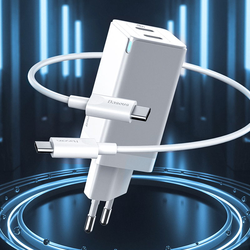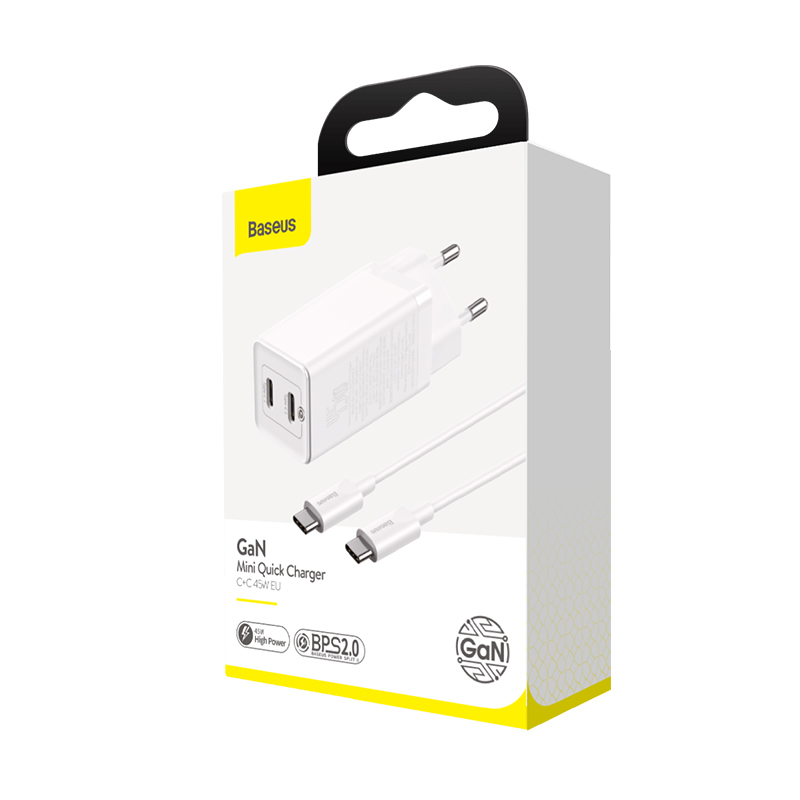 Сетевое зарядное устройство Baseus GaN Mini Quick Charger 45W 2* TYPE-C (CCGAN-M02) White