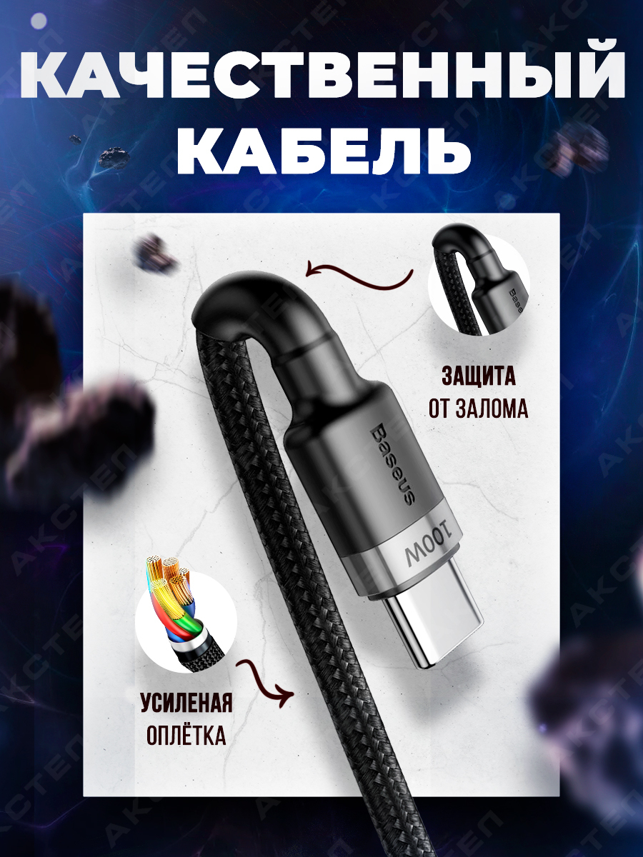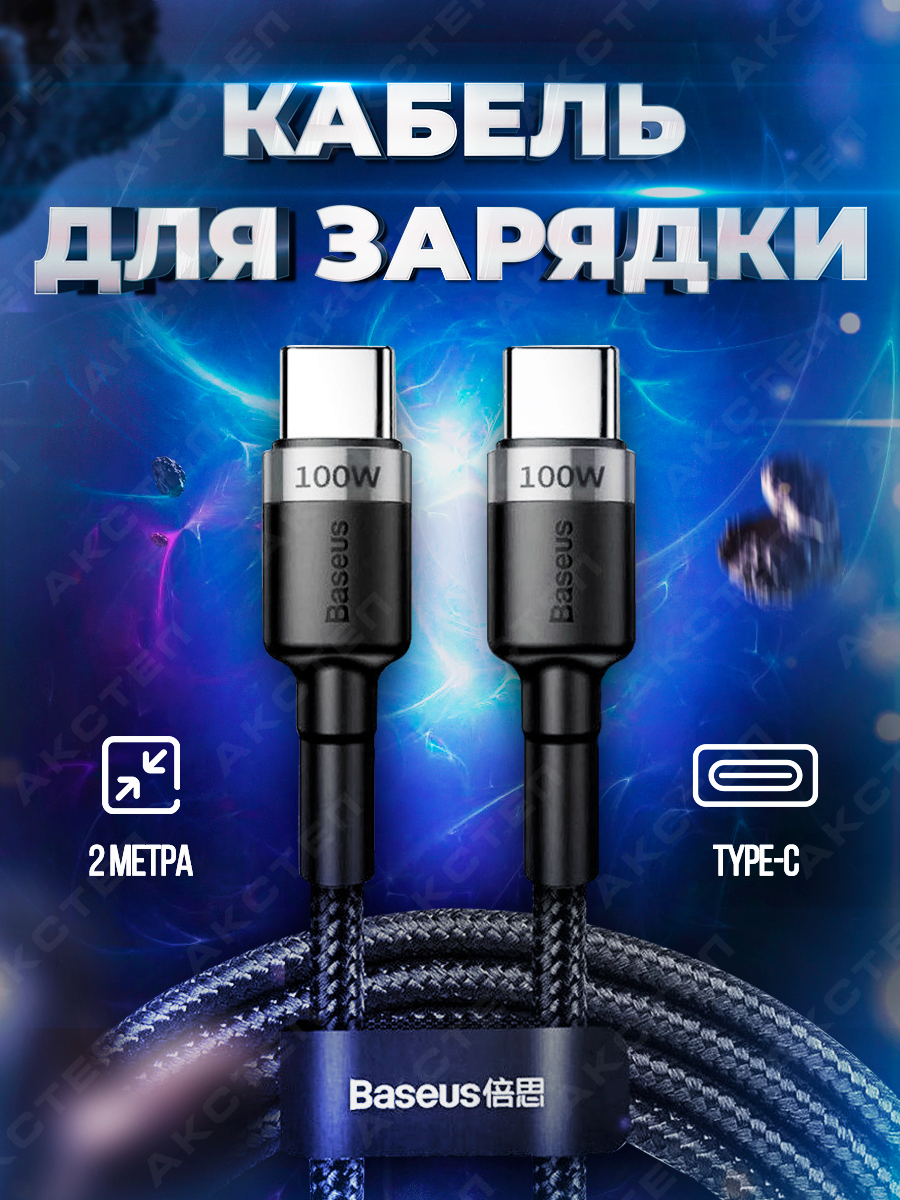 Кабель для зарядки Baseus Type-C/Type-C PD 2.0 100W 5A Быстрая зарядка 2 метра черно-серый