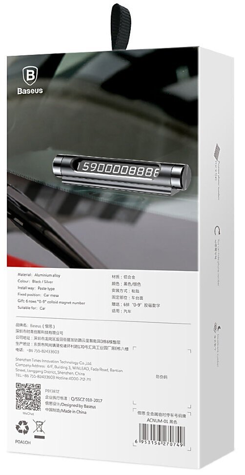 Автовизитка Baseus Temporary Parking Number ACNUM-01, черный