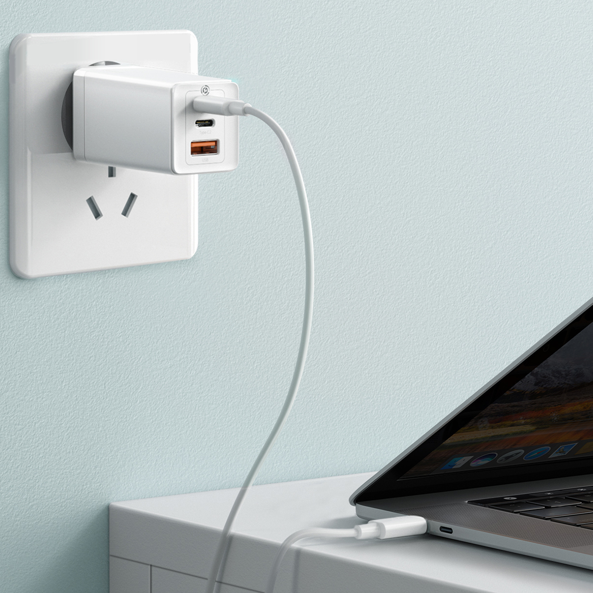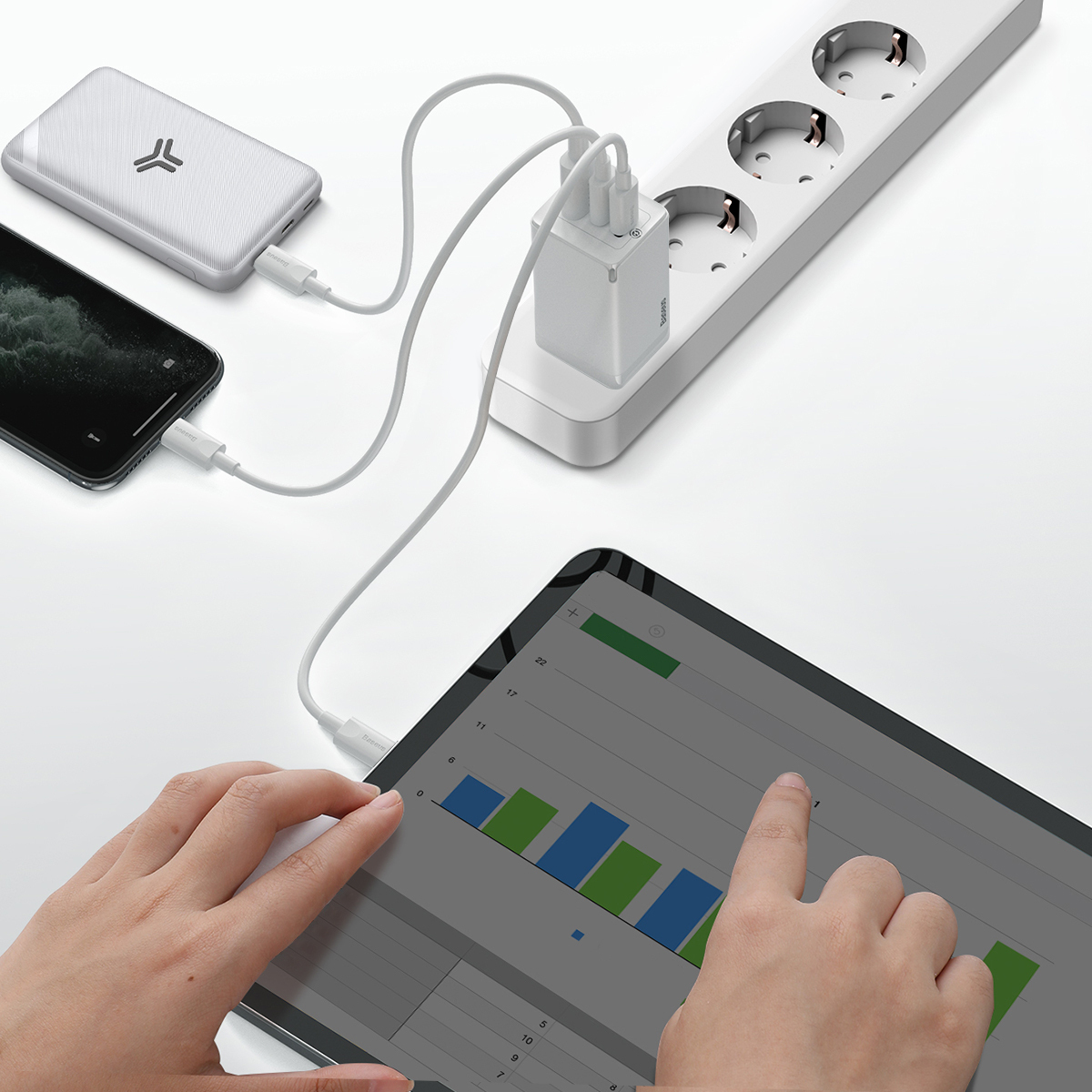 Сетевое зарядное устройство Baseus GaN2 Pro Quick Charger 2*C+U 65W EU White (CCGAN2P-B02)