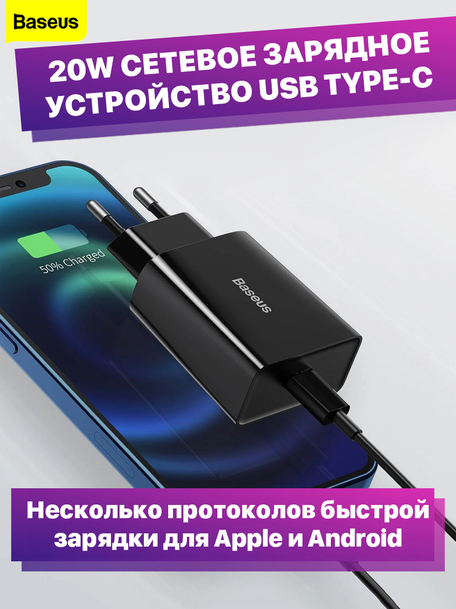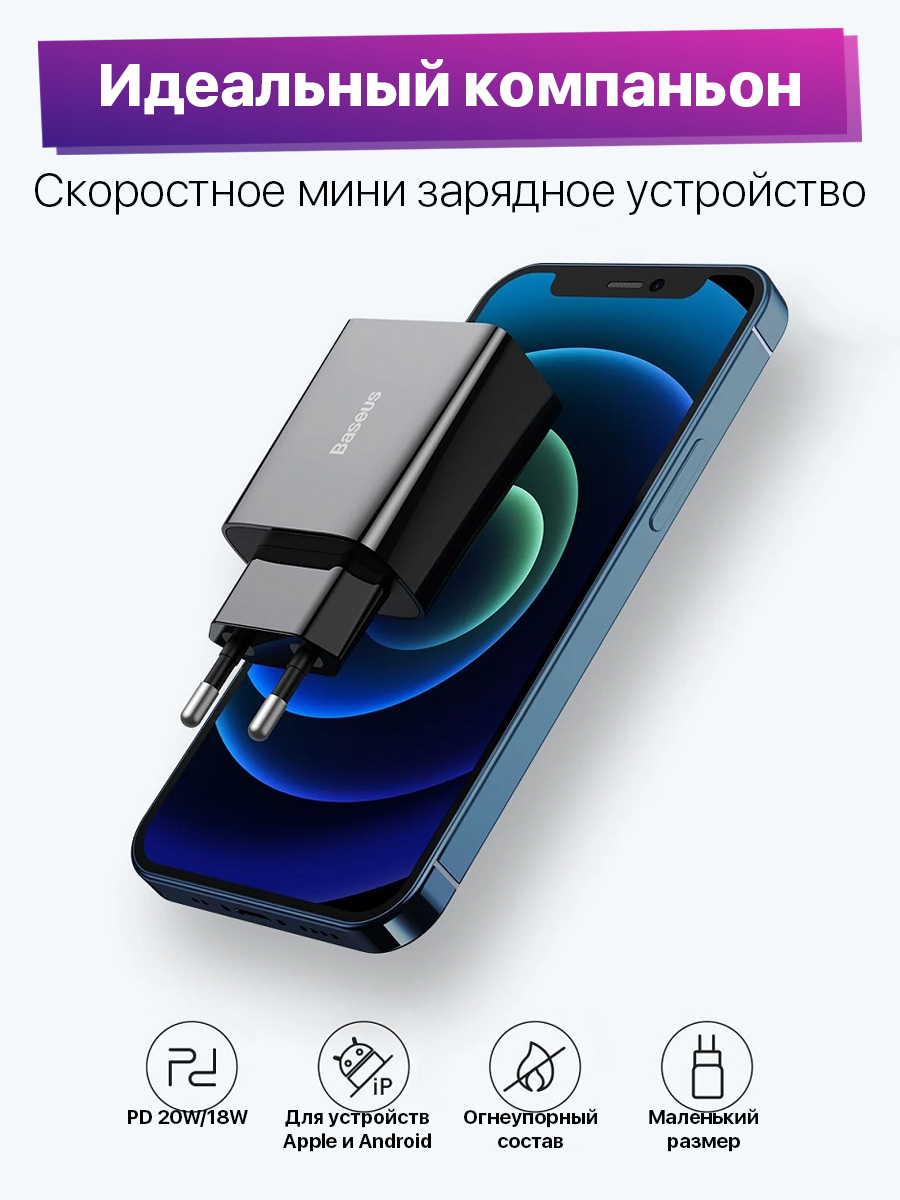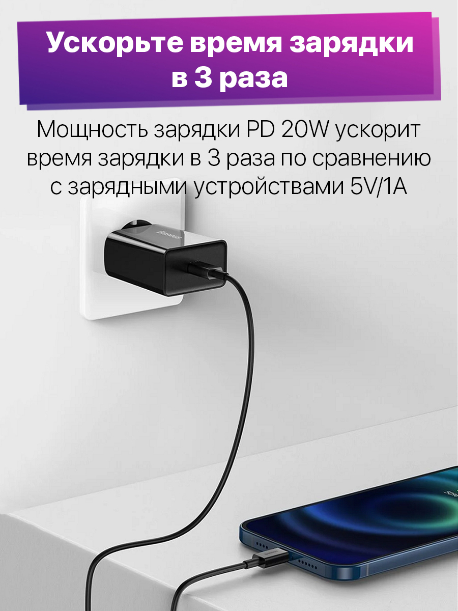 Сетевое зарядное устройство Baseus Type-C USB-C Quick Charger 20W PD / Адаптер питания, черное