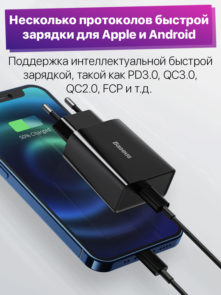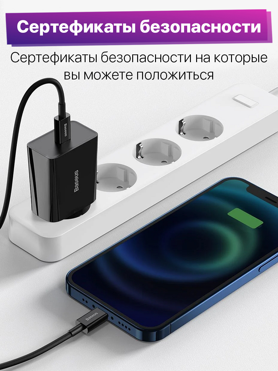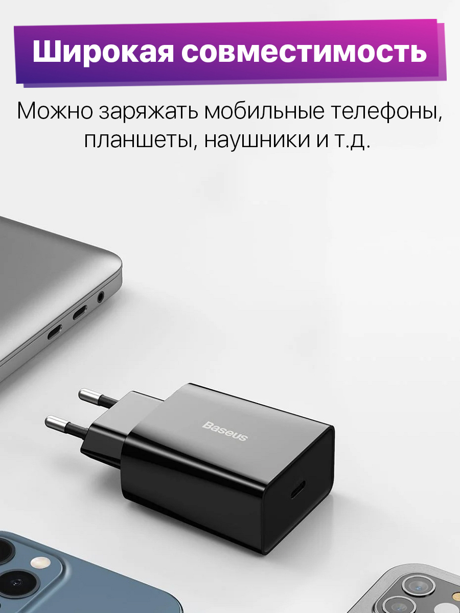 Сетевое зарядное устройство Baseus Type-C USB-C Quick Charger 20W PD / Адаптер питания, черное