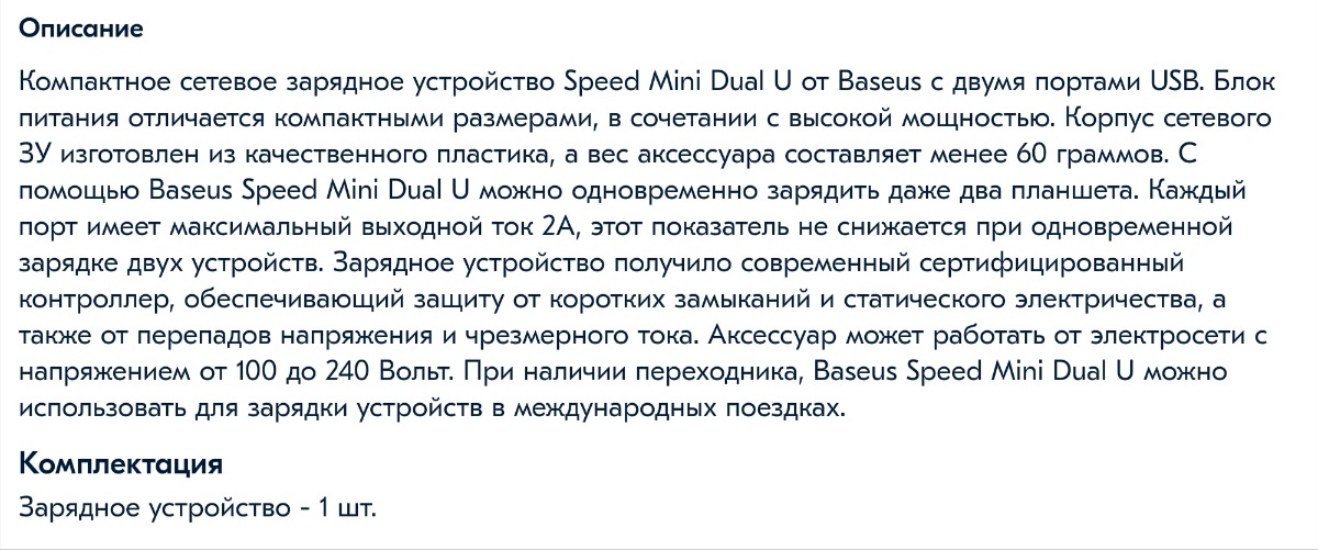 Сетевое зарядное устройство Speed Mini Dual U Charger 10.5W
