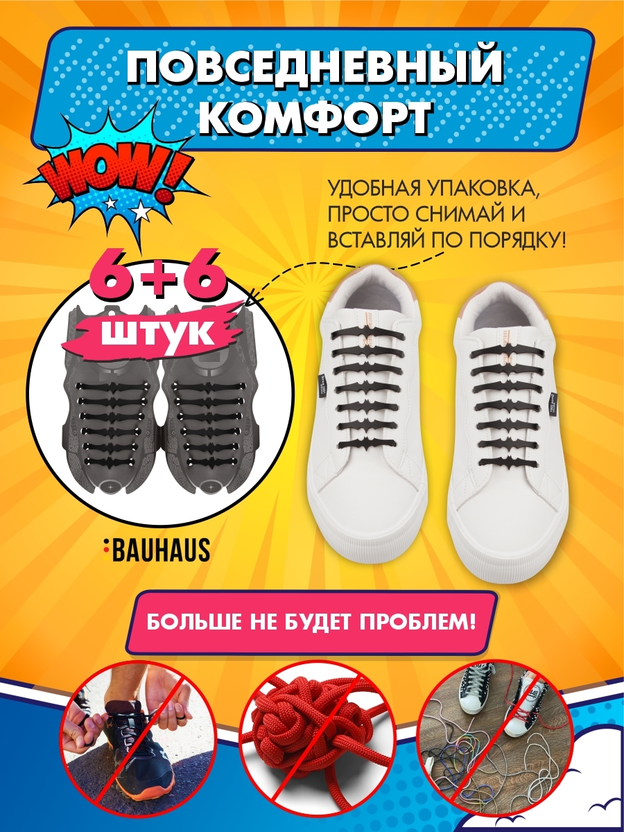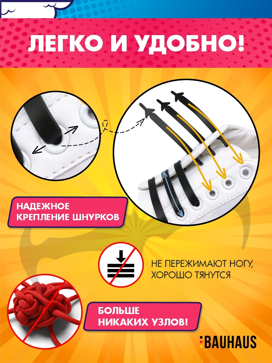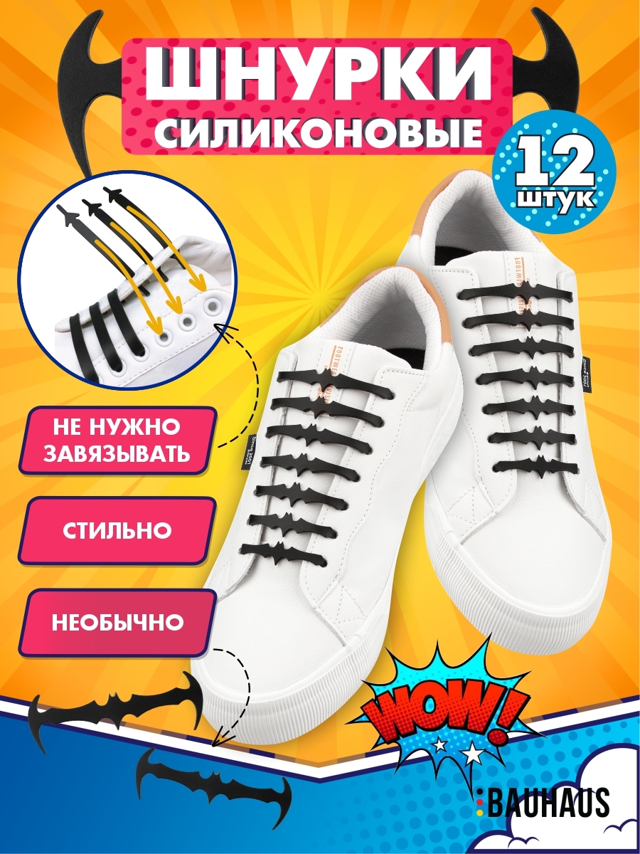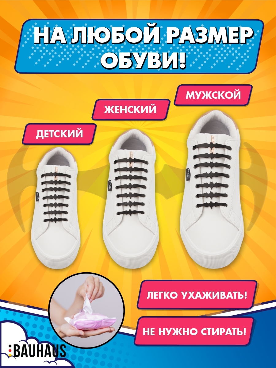 Шнурки для обуви силиконовые эластичные черные Ленивые шнурки Шнурки без завязок