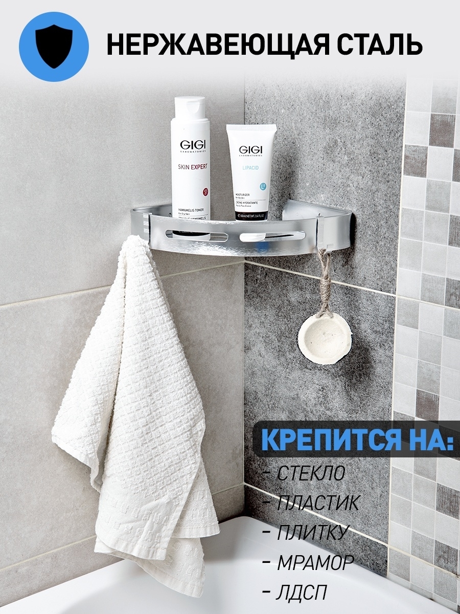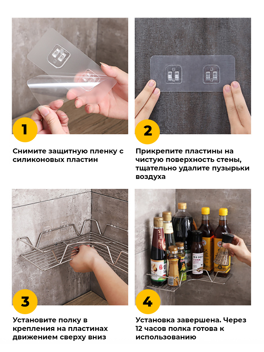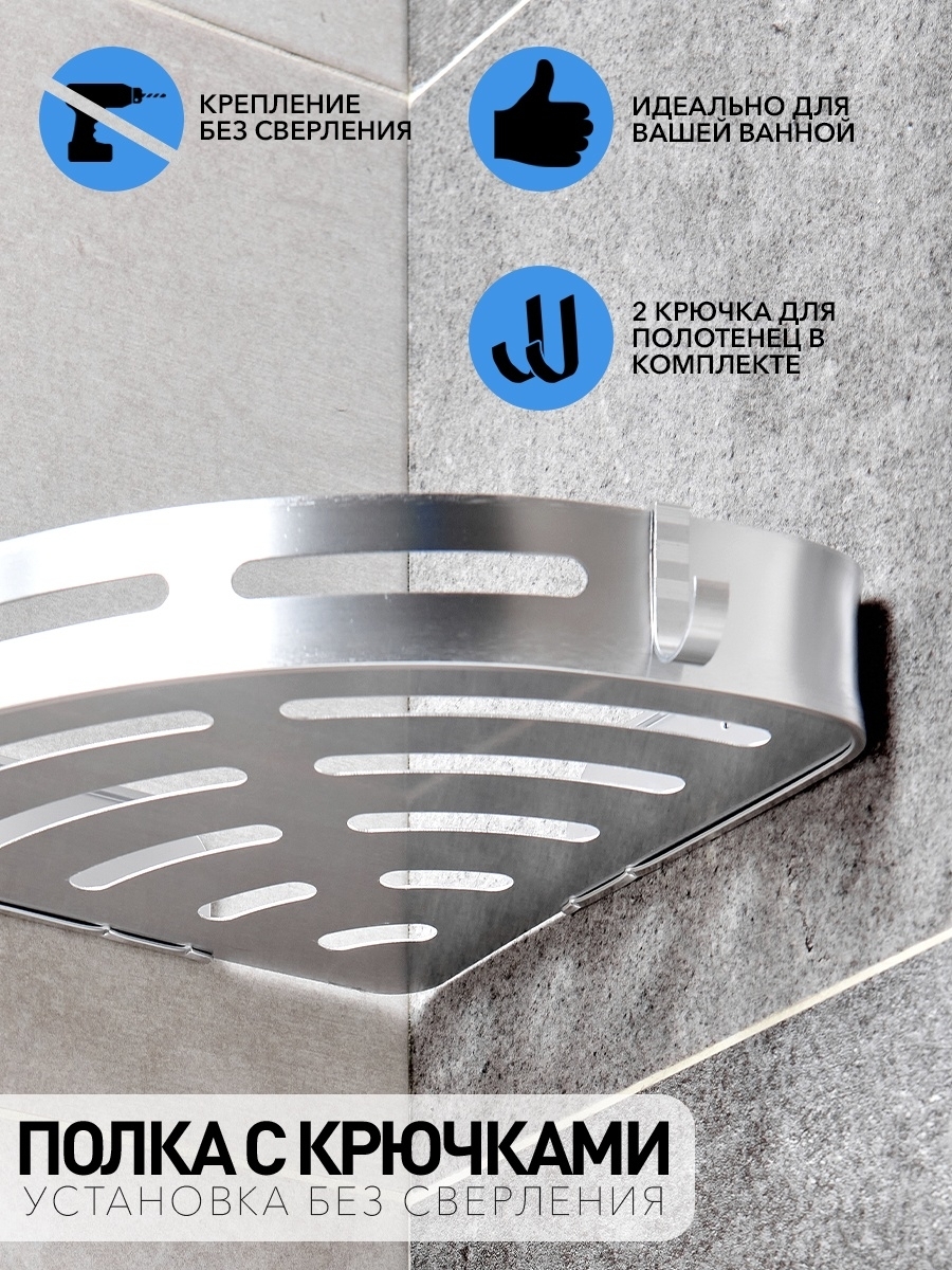 Полка для ванной угловая на силиконовом креплении/ Полка металлическая для кухни/ Полка в ванную