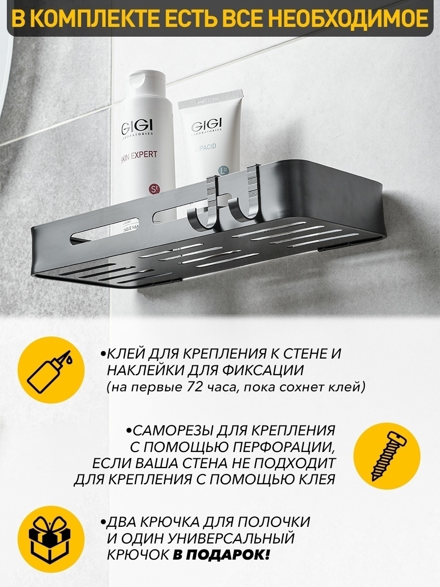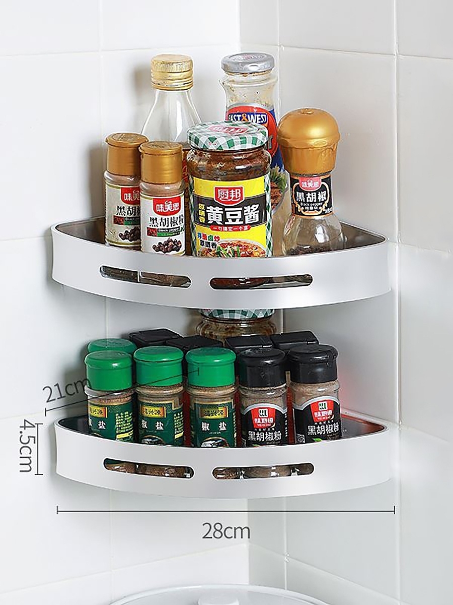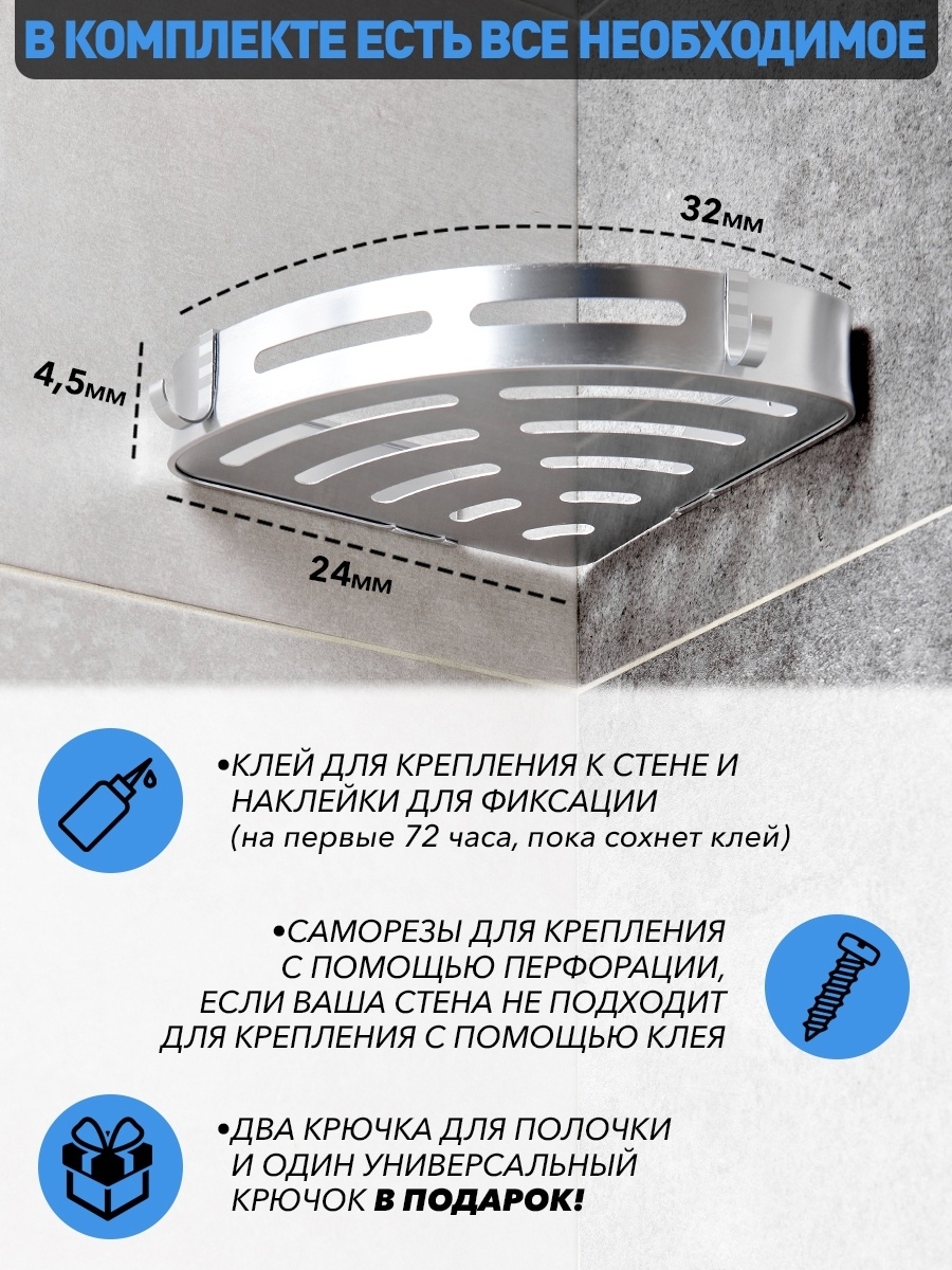 Полка для ванной угловая на силиконовом креплении/ Полка металлическая для кухни/ Полка в ванную