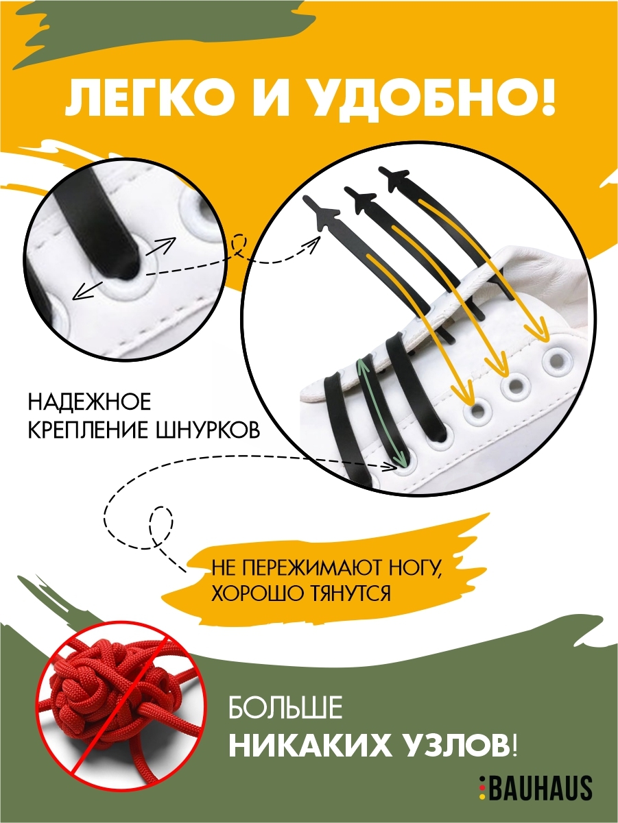 Шнурки эластичные Комплект эластичных шнурков с фиксатором Шнурки без завязок