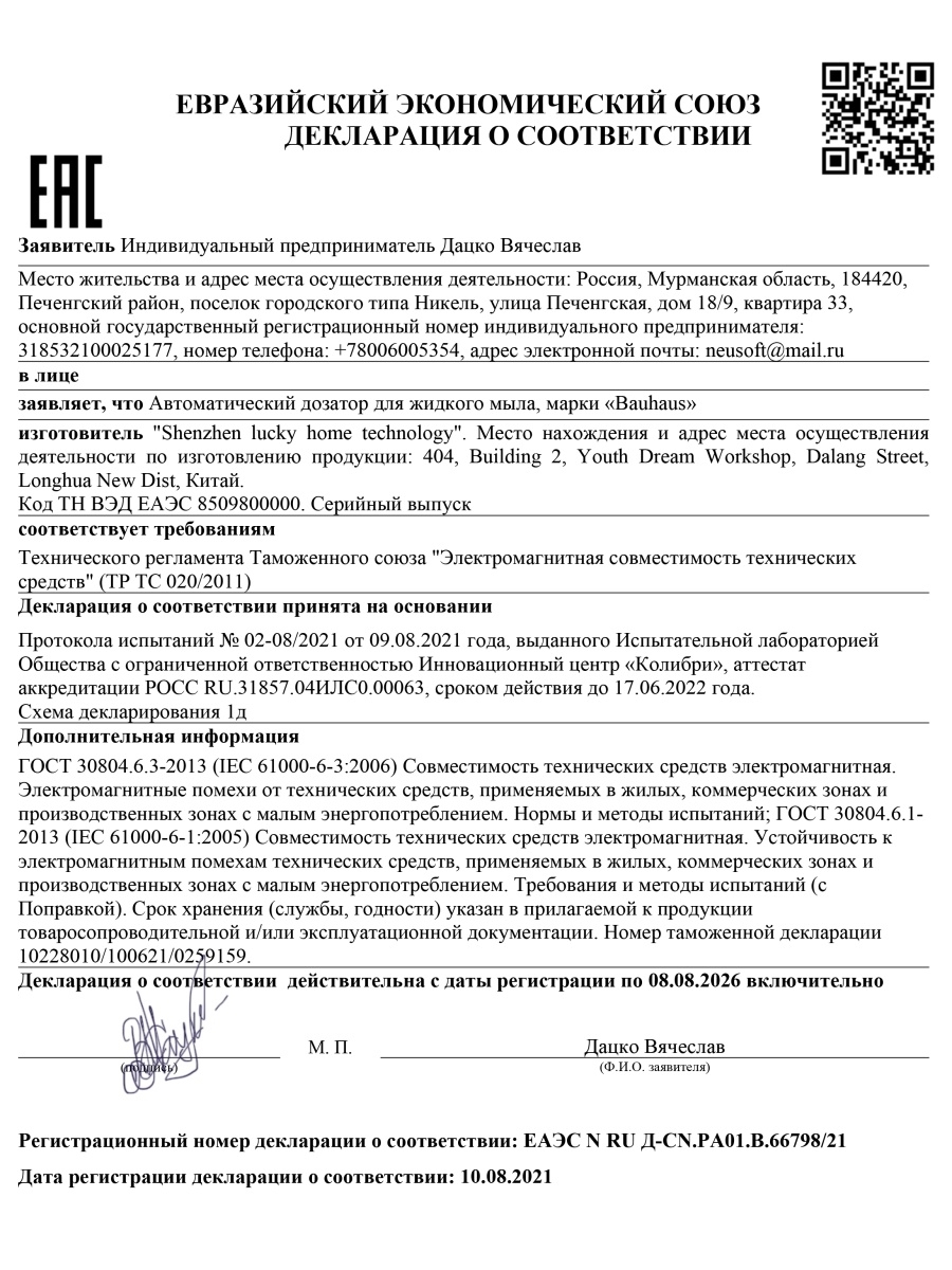 Диспенсер для мыла-пены, Диспенсер для мыла сенсорный BAUHAUS, 250 мл