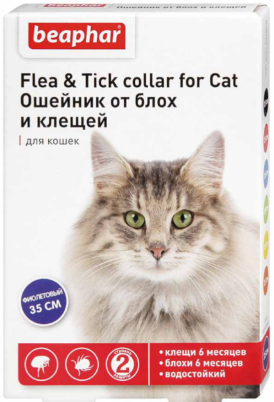 Ошейник от блох и клещей Beaphar для кошек NEW DIAZ, защита на 6 мес, фиолетовый, 35 см.
