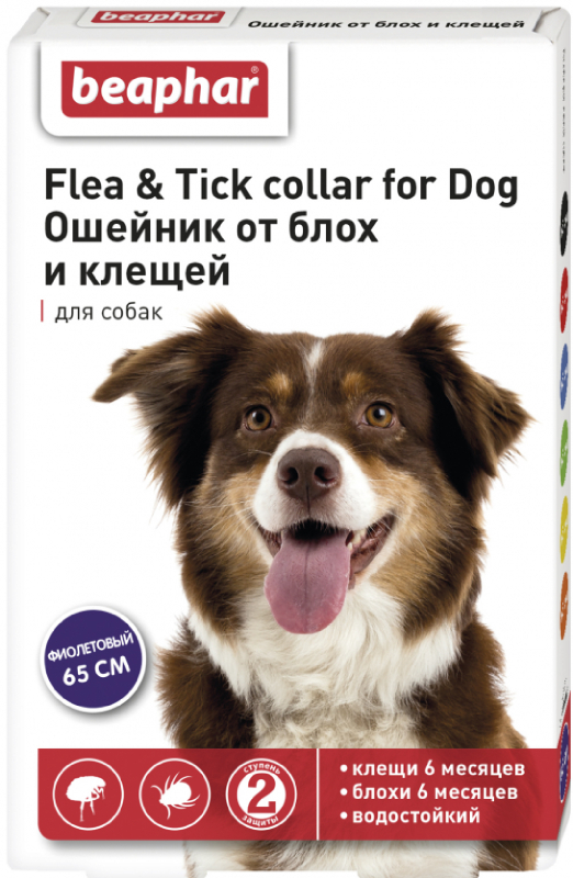 Ошейник от блох и клещей Beaphar для собак NEW DIAZ, защита на 6 мес, фиолетовый, 65 см.