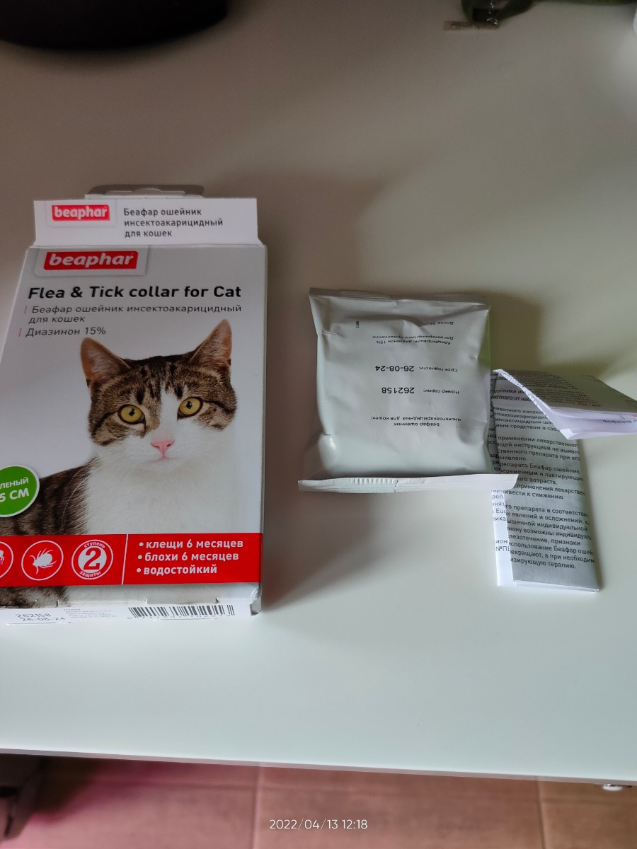 Ошейник от блох и клещей Beaphar для кошек NEW DIAZ, защита на 6 мес, зеленый, 35 см.