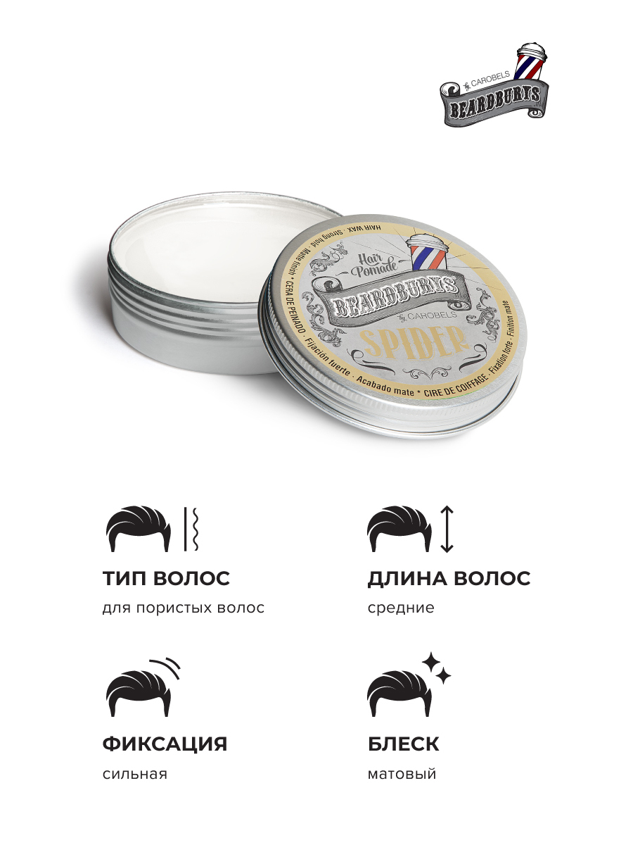Beardburys Текстурирующая помада для волос мужская Spider, 100 мл