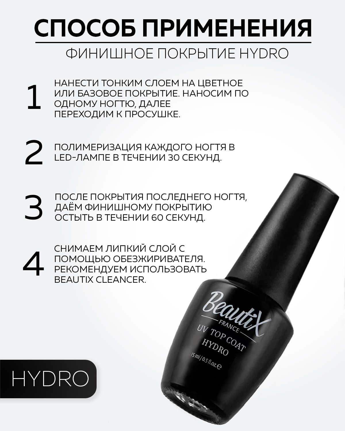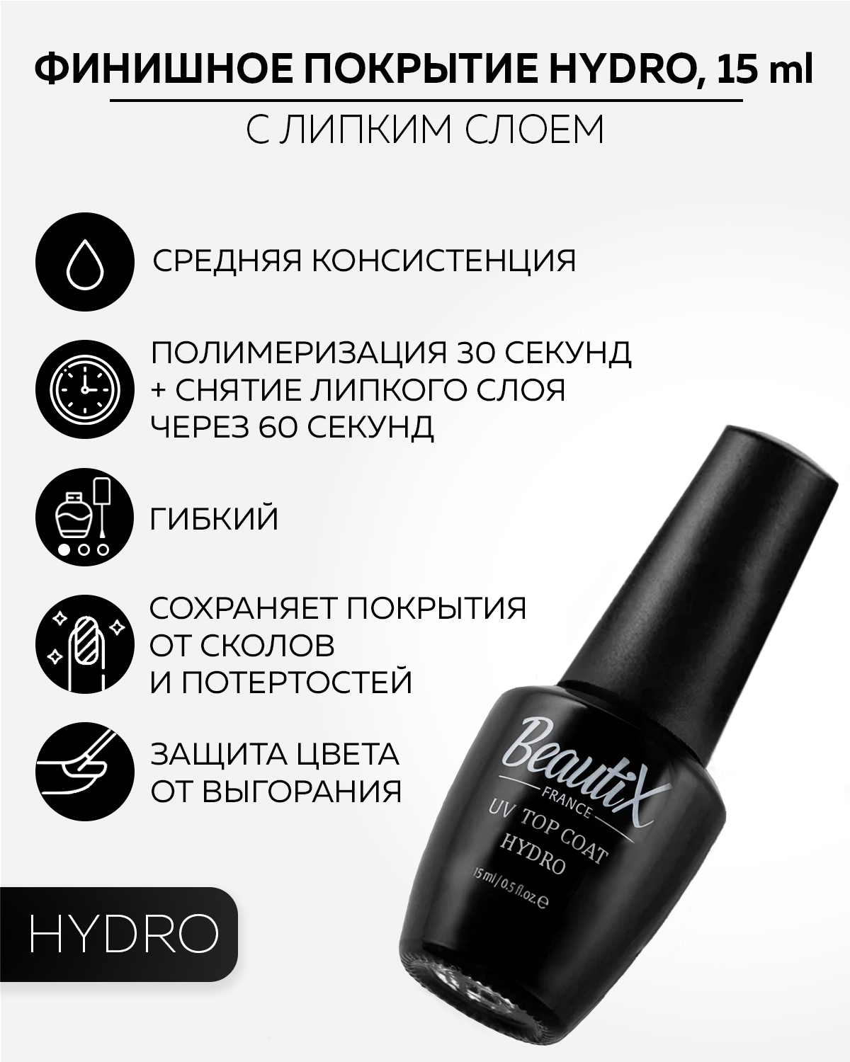 BeautiX, топ для гель-лака с липким слоем Hydro, 15 мл