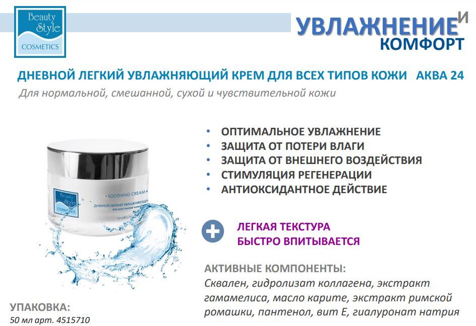 Beauty Style Дневной легкий увлажняющий крем для всех типов кожи, 50мл.