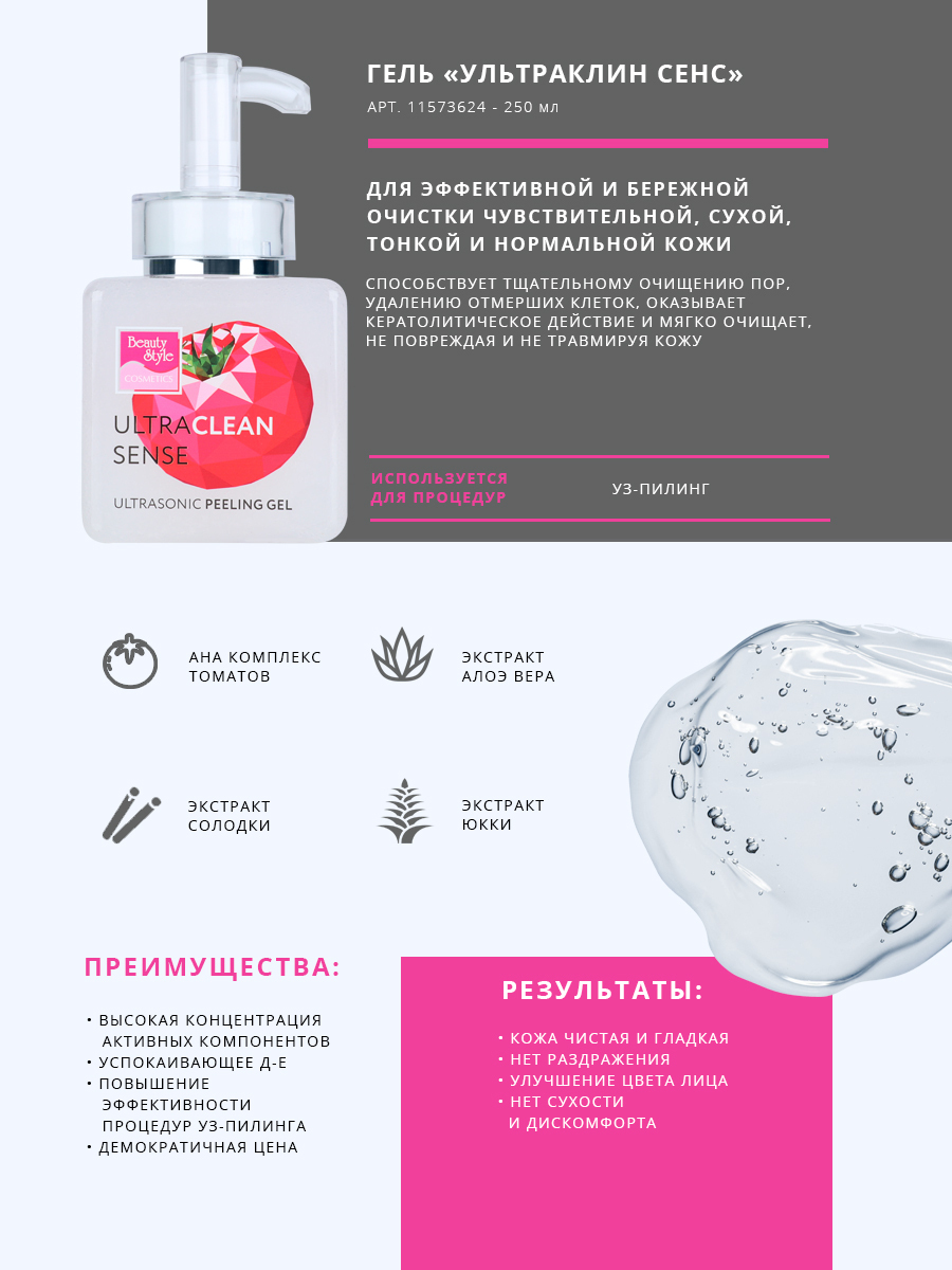 Beauty Style Гель для ультразвуковой чистки лица "Ультраклин сенс" 250 мл