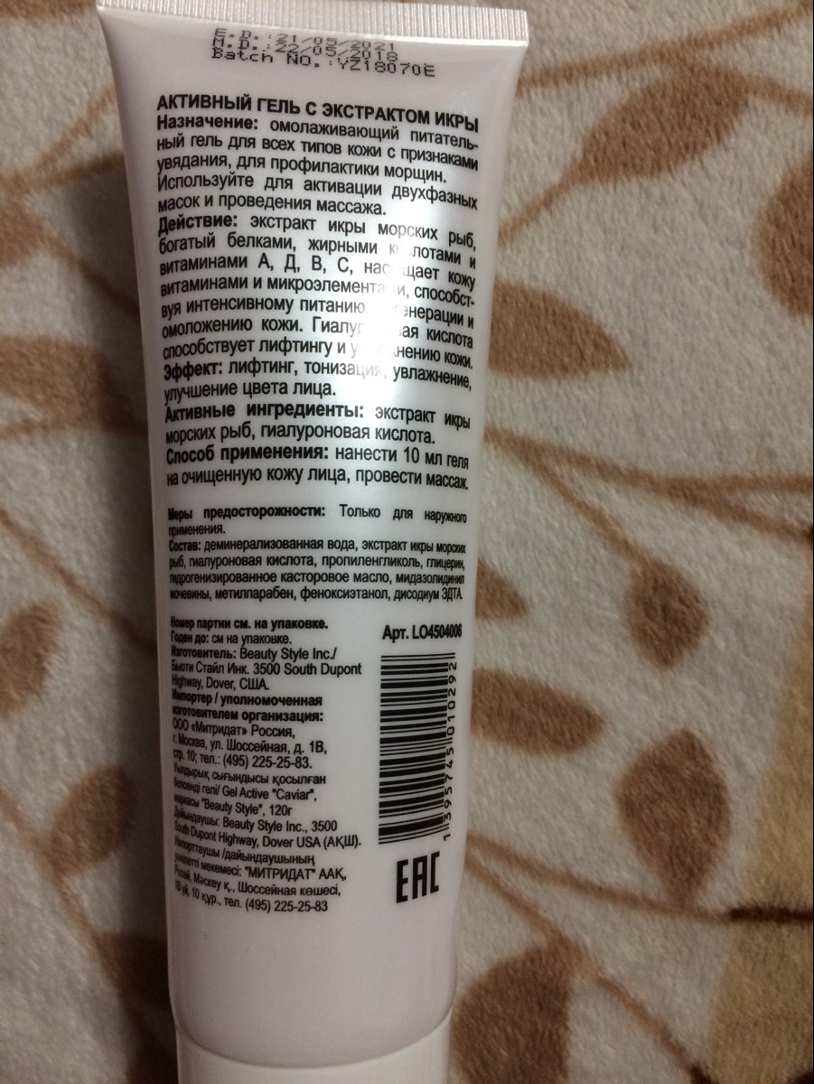 Beauty Style Гель для лица с экстрактом икры, коллагеном и гиалуроновой кислотой, 120 мл