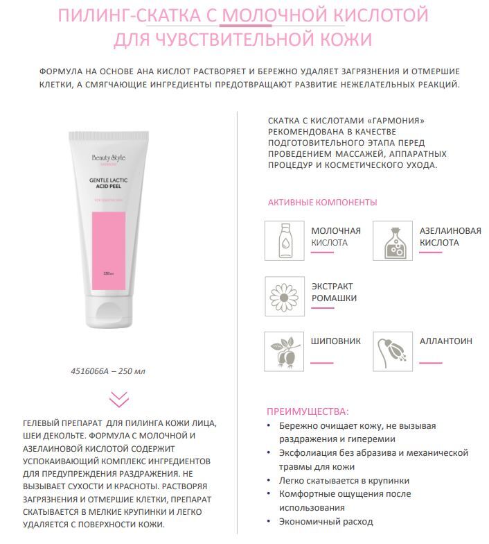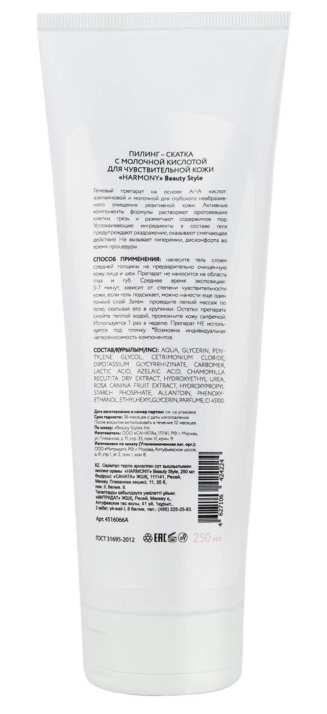 Beauty Style, Пилинг-скатка с молочной кислотой для чувствительной кожи Harmony 250 мл