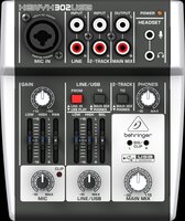Микшер BEHRINGER 302USB, 1 микрофонный моновход, 2 стерео входа, USB интерфейс