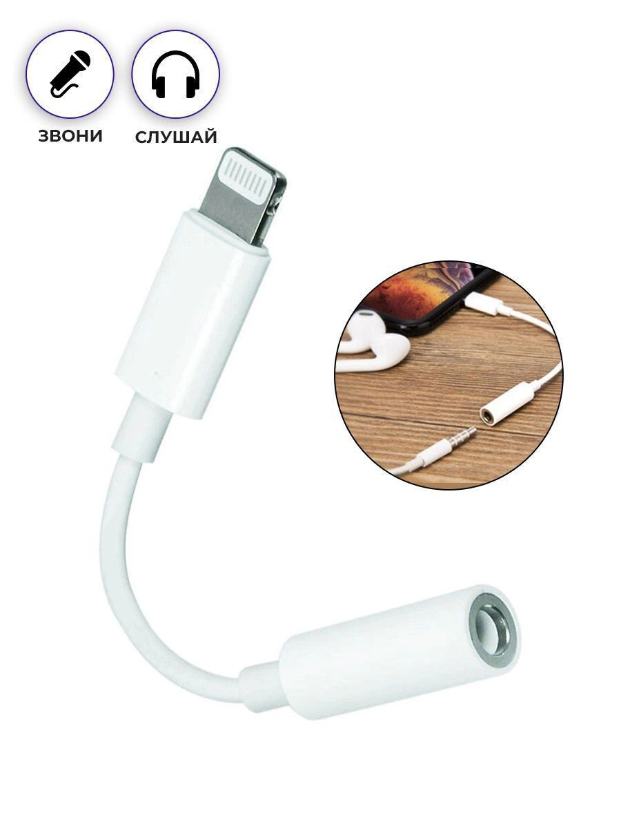 Переходник-Адаптер Lightning - AUX для наушников Iphone и кабеля AUX на 3,5 мм, Belgros, белый
