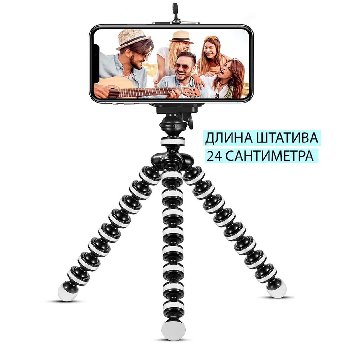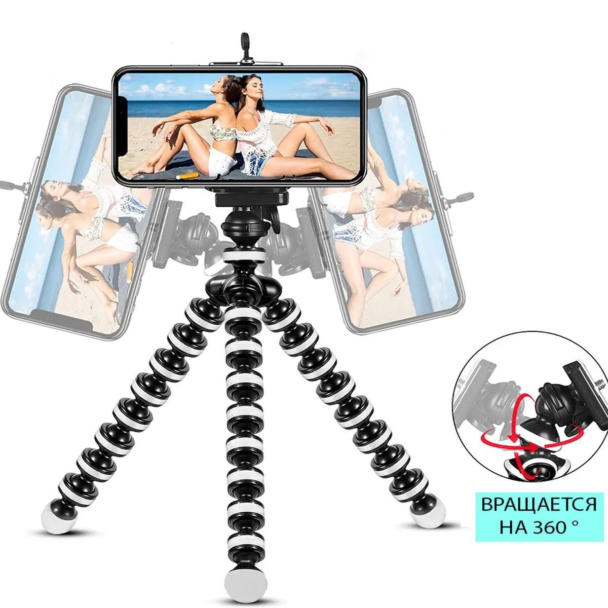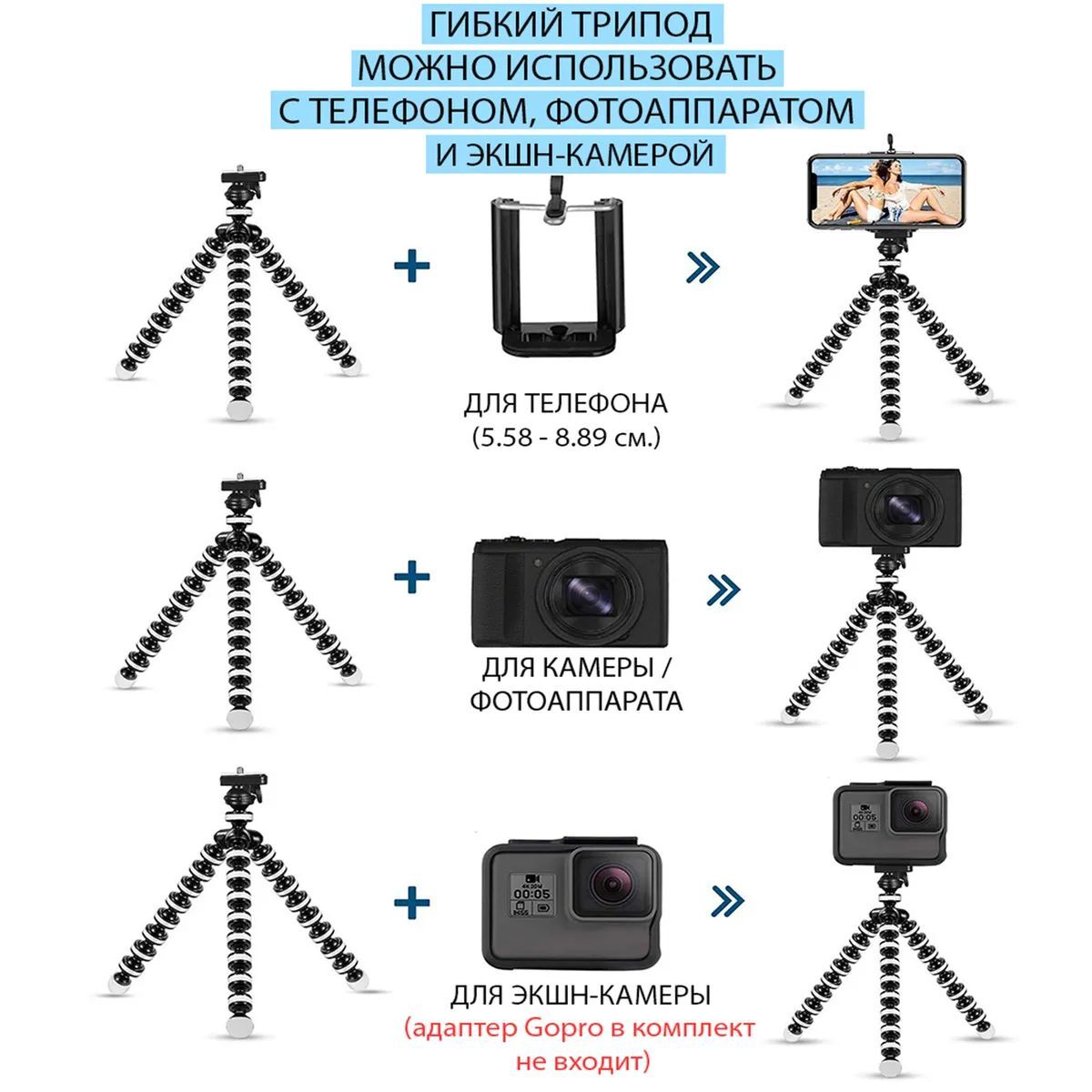 Штатив с гибкими ножками и держателем для телефона фото-видео техники, с съемной платформой, длина 25 см, черно-белый, Belgros