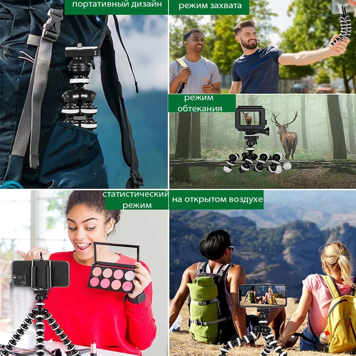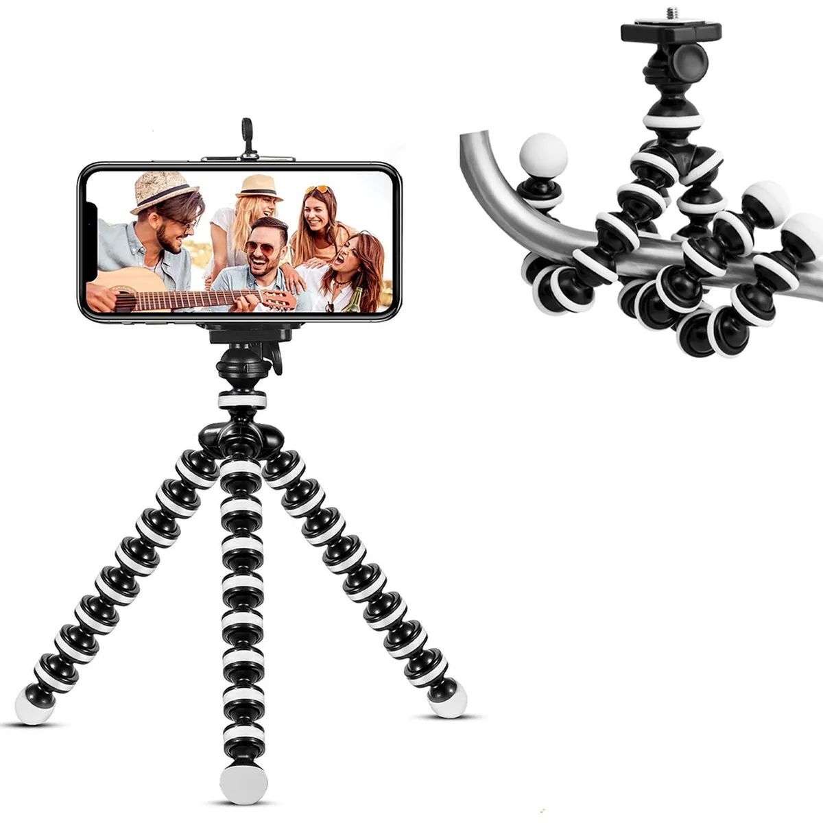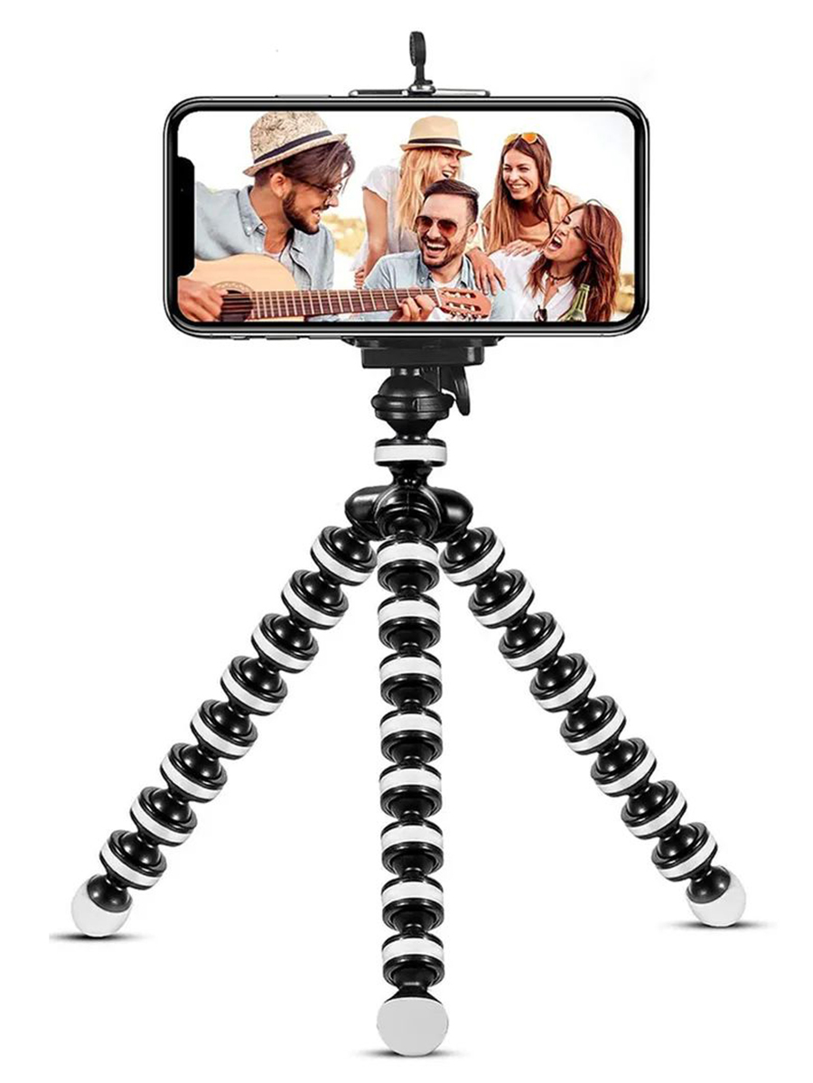 Штатив с гибкими ножками и держателем для телефона фото-видео техники, с съемной платформой, длина 25 см, черно-белый, Belgros