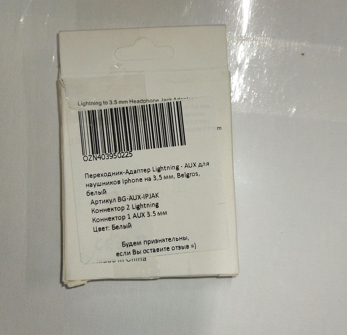 Переходник-Адаптер Lightning - AUX для наушников Iphone и кабеля AUX на 3,5 мм, Belgros, белый. Уцененный товар