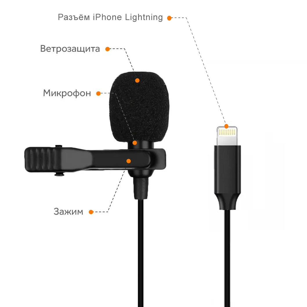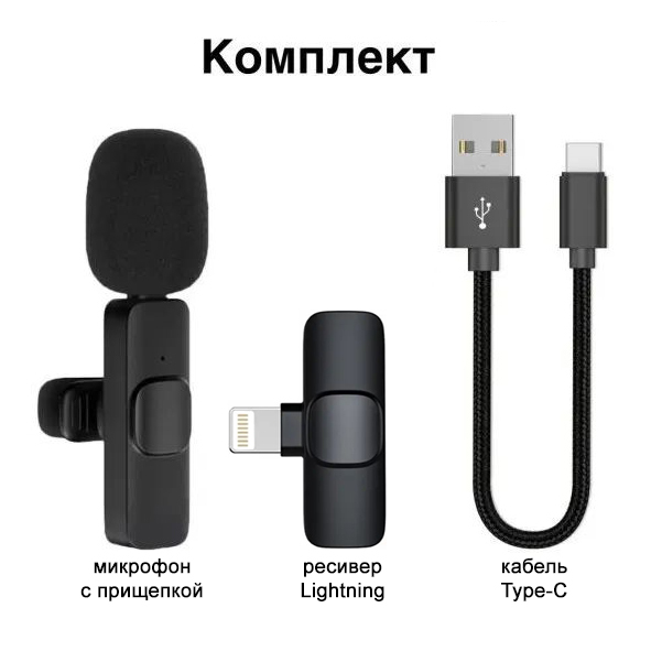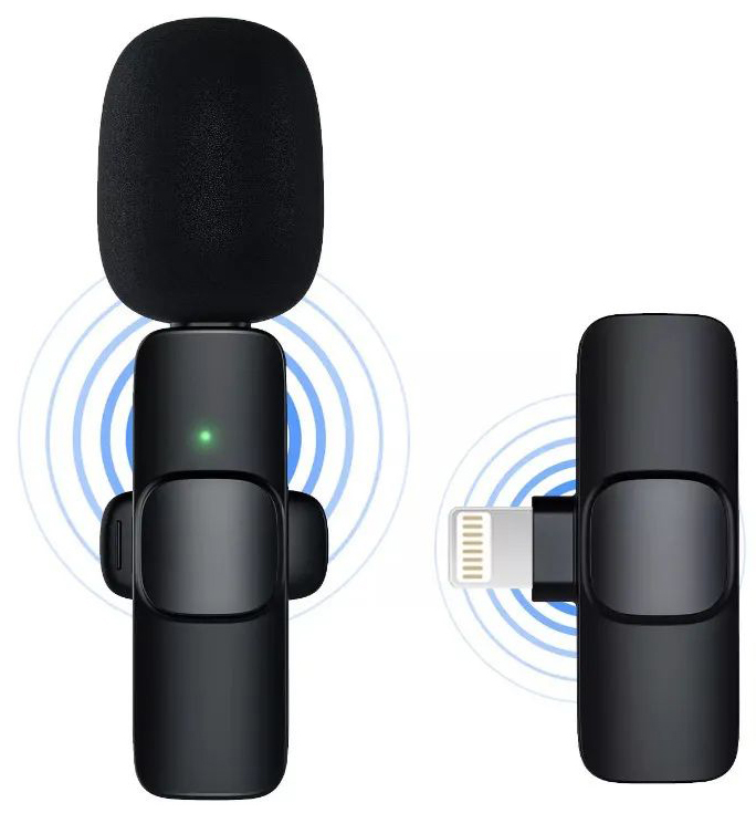 Микрофон петличный Belgros Беспроводной Wireless Bluetooth Microphone Lightning K9, петличка для iPhone и iPad, PetlBelgrWirlines, черный