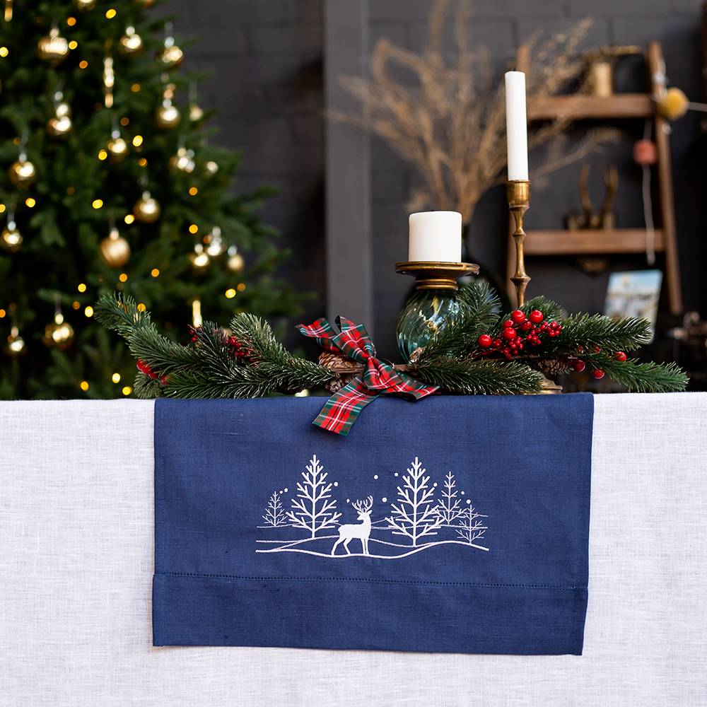 Дорожка для декора стола с вышивкой, 100% лен, 40х160 см