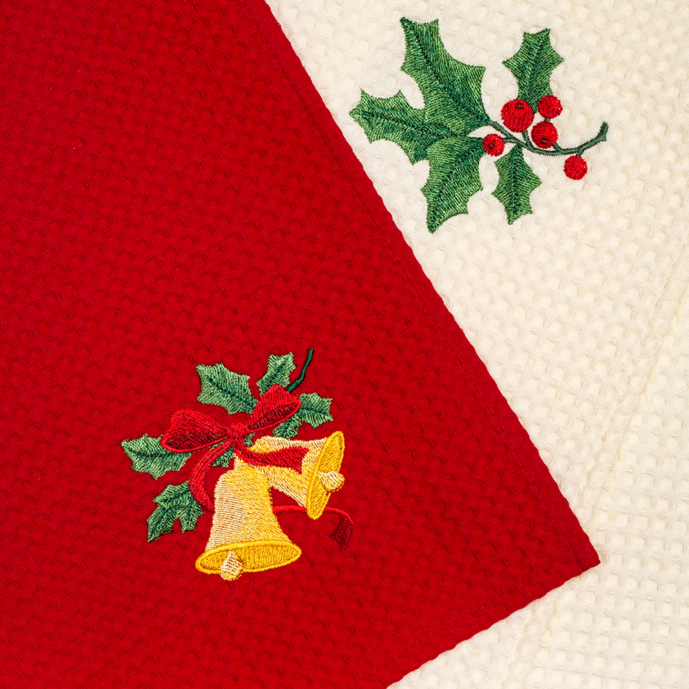 Комплект полотенец вафельных с вышивкой Новогоднее настроение