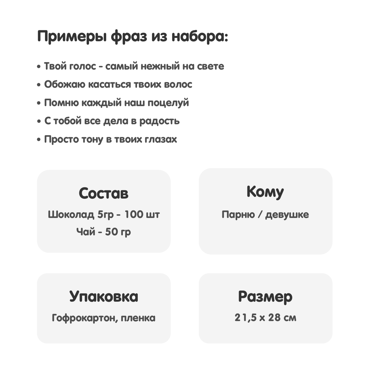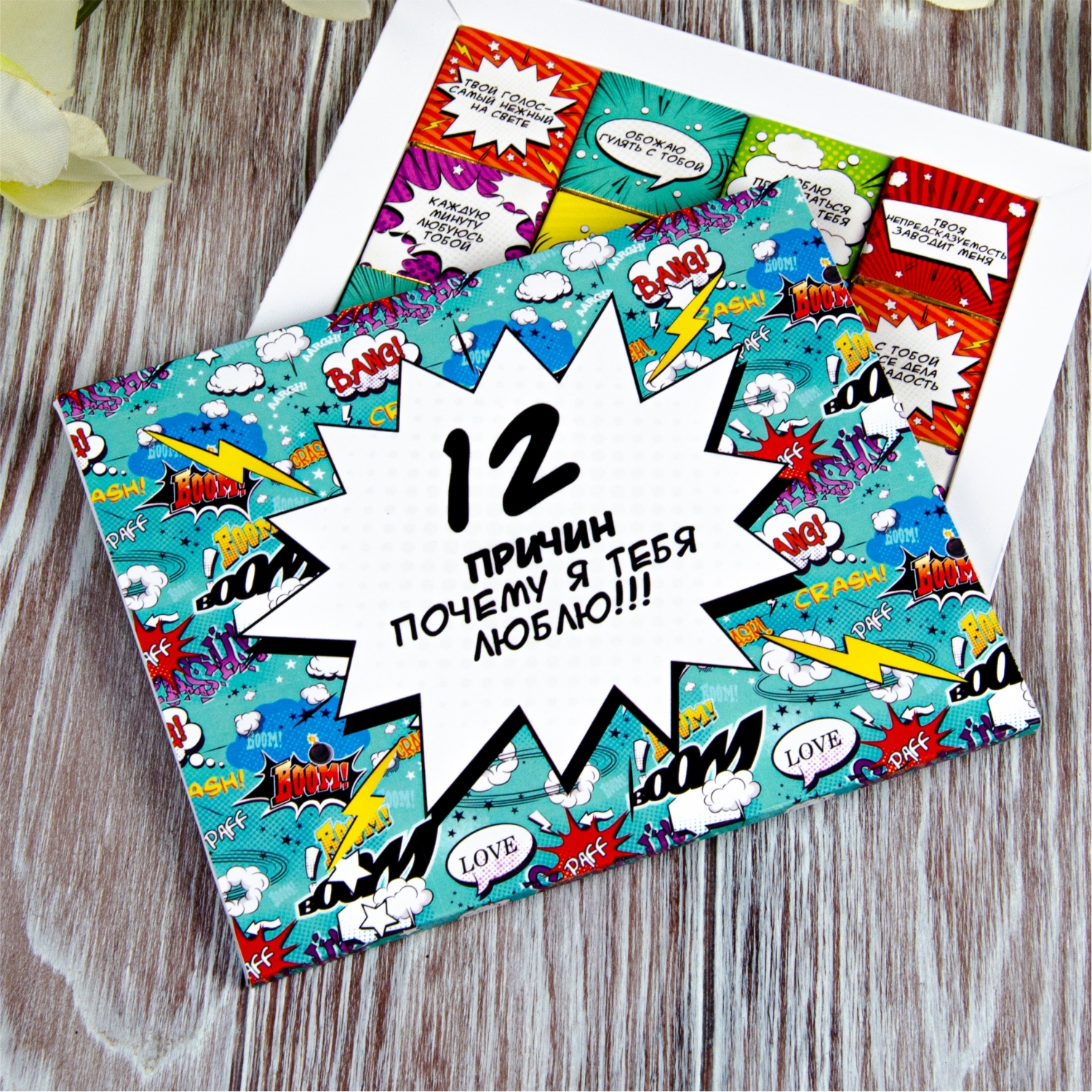 Шоколадный набор "Причины почему я тебя люблю". Подарок парню, девушке, любимой, жене.
