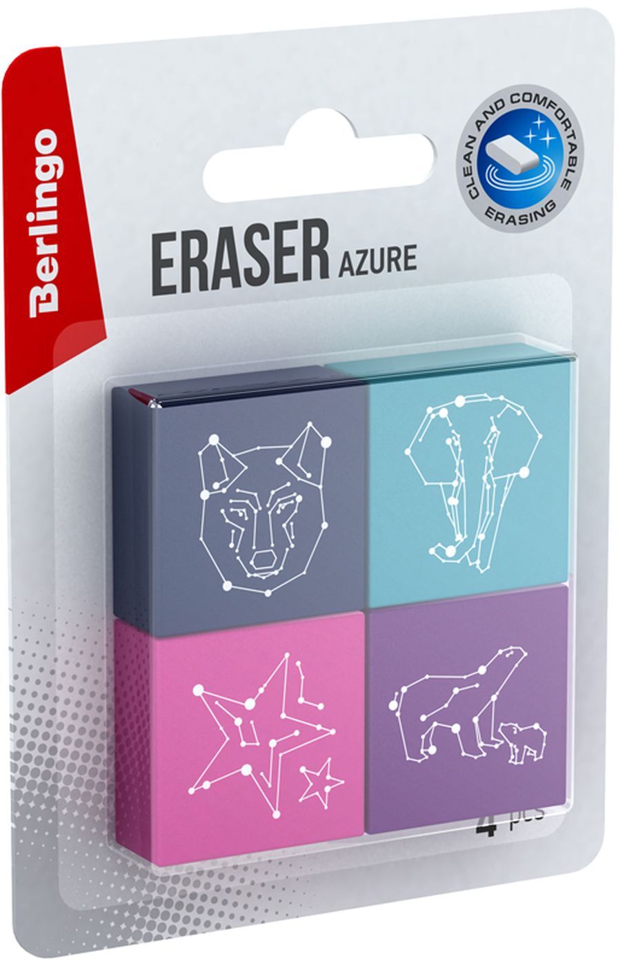 Ластик Berlingo Azure, прямоугольный, 28 х 28 х 12 мм, 4 шт