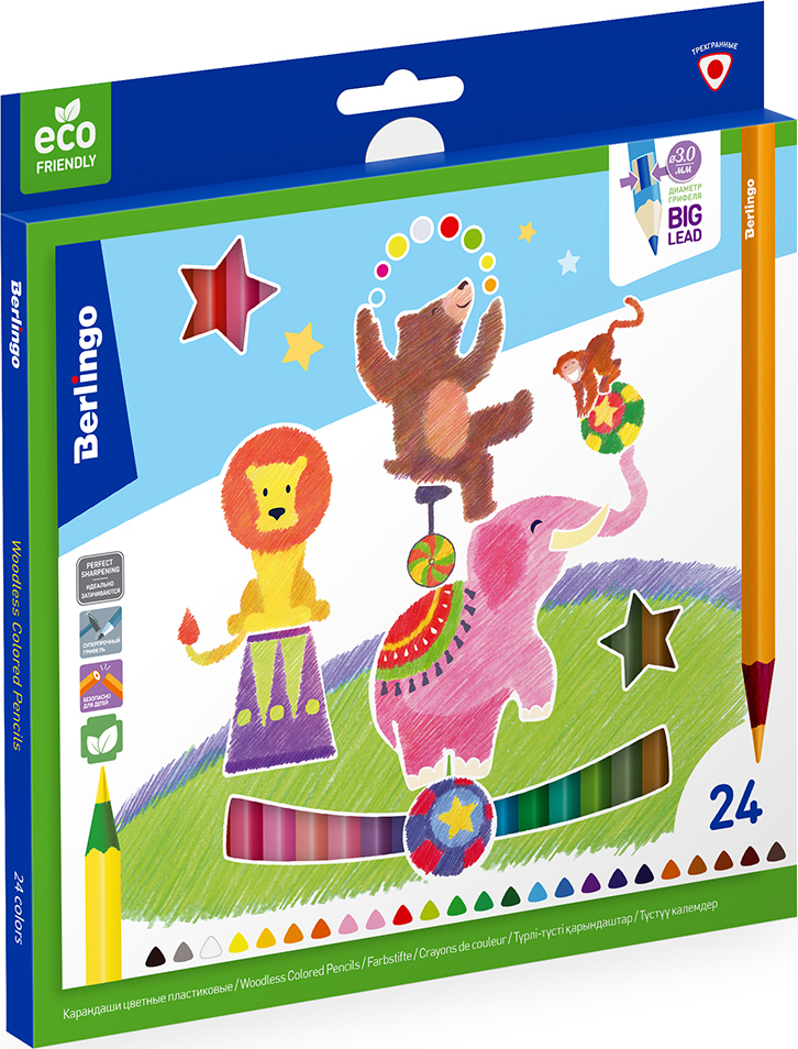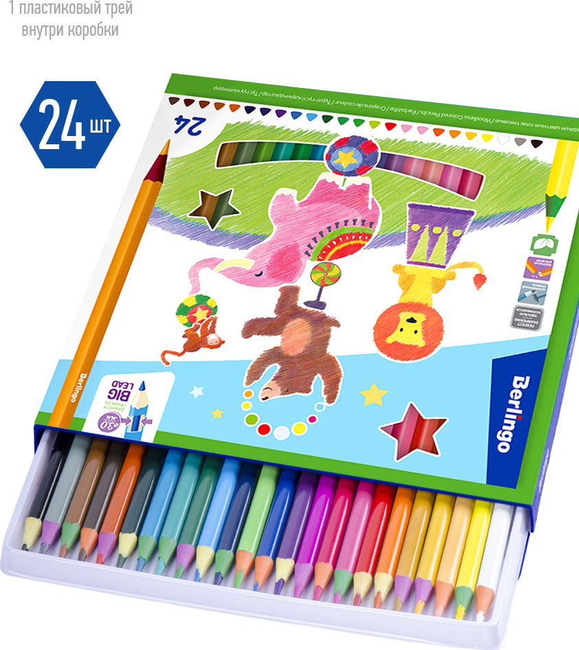 Набор карандашей Berlingo Элефант Цирк, заточенные, цветные, CP_04824, 24 цвета
