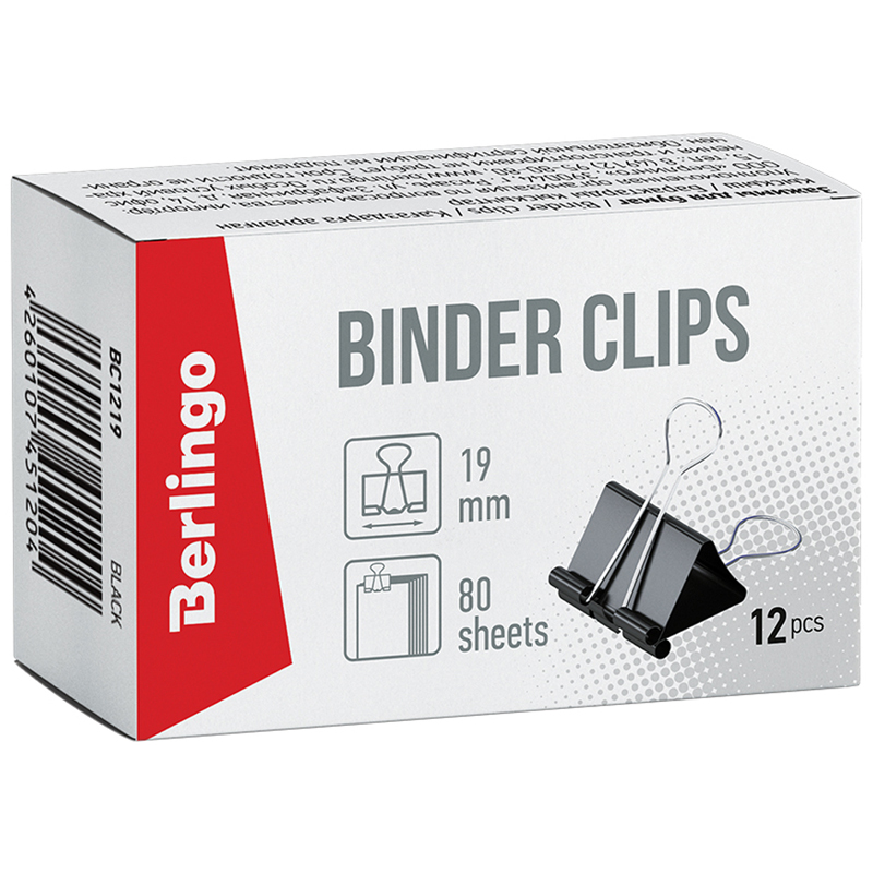 Зажимы для бумаг 15мм, Berlingo, 12шт., черные, картонная коробка
