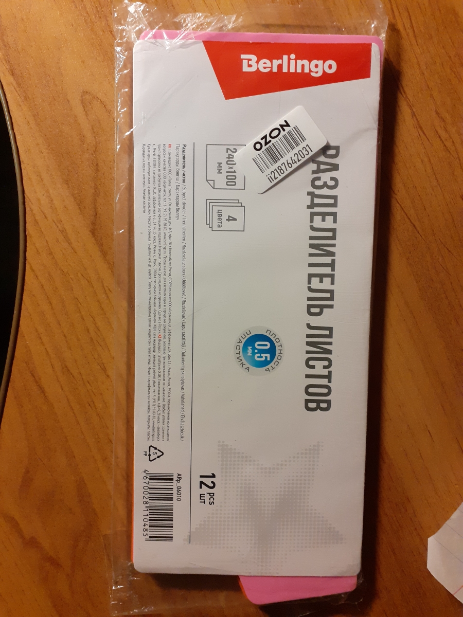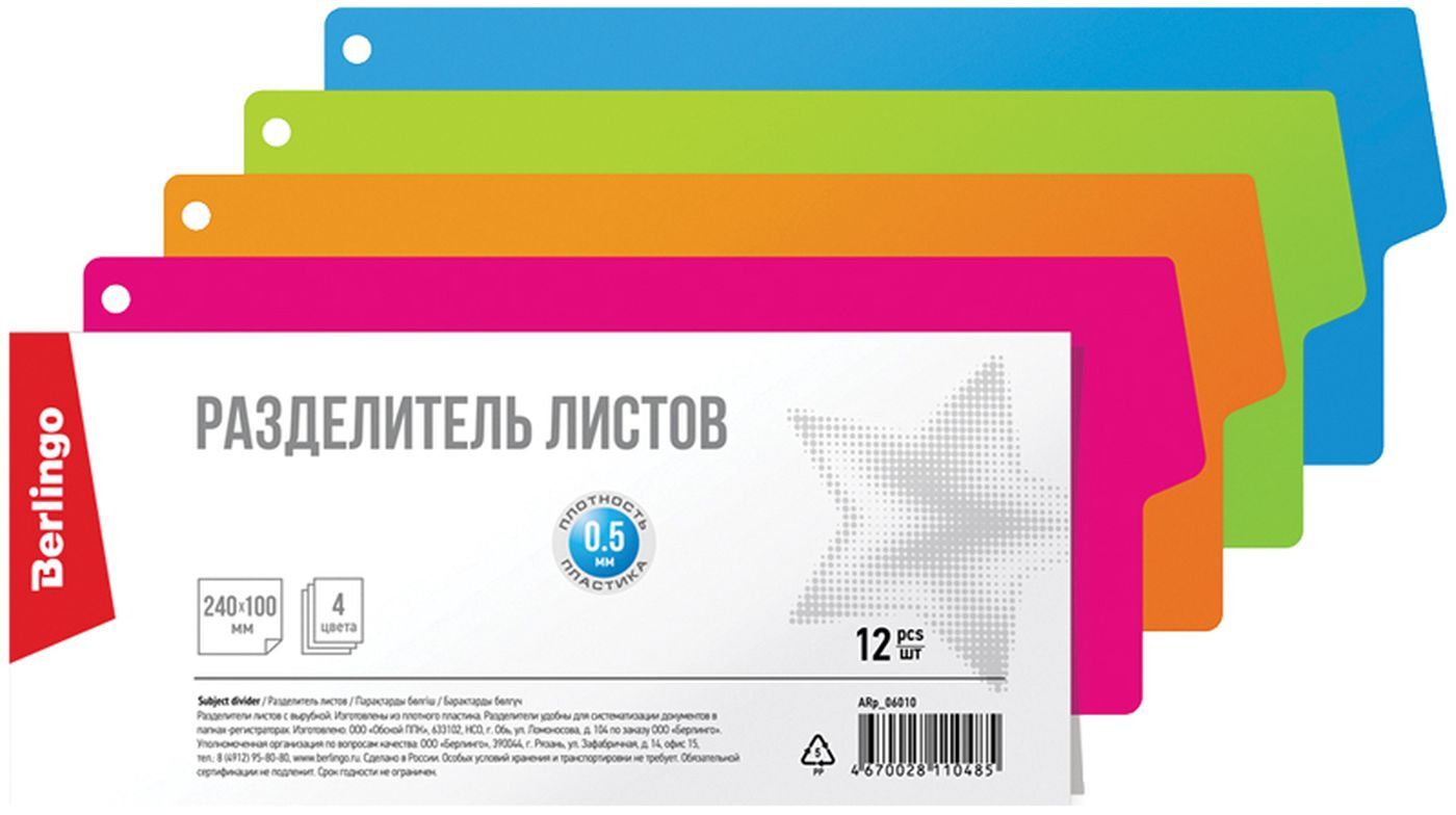 Разделитель для папки Berlingo, без индексации, 240 х 100 мм, разноцветный, 12 шт