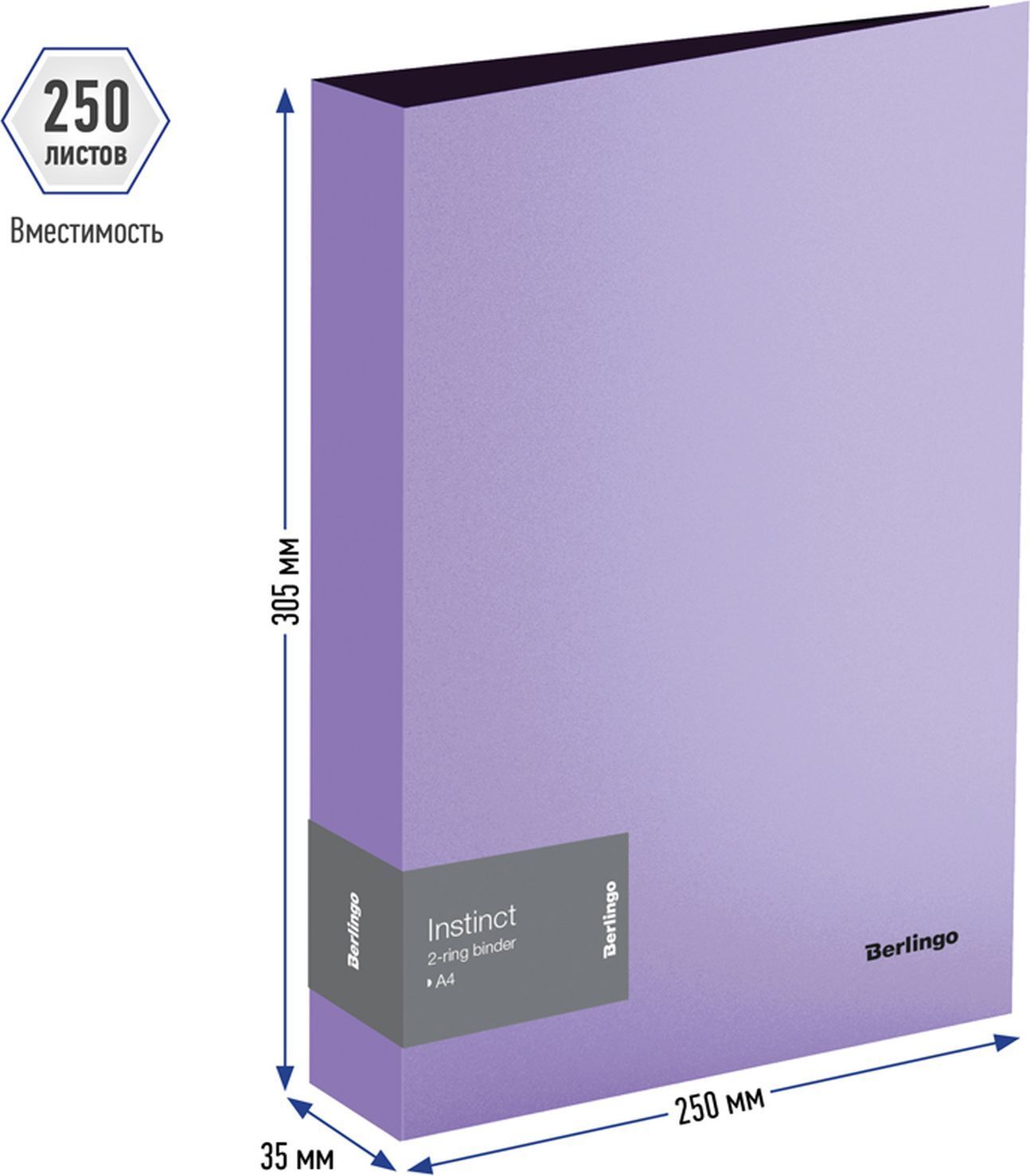 Папка на 2 кольцах Berlingo серия Instinct А4, пластик, 700 мкм, 35 мм, 250 листов, лаванда