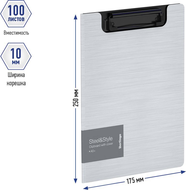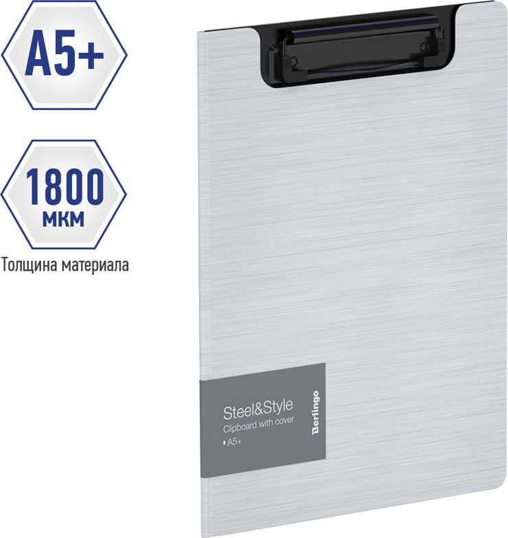 Папка-планшет с зажимом Berlingo Steel&Style, A5+, 1800 мкм, пластик, полифом, белая