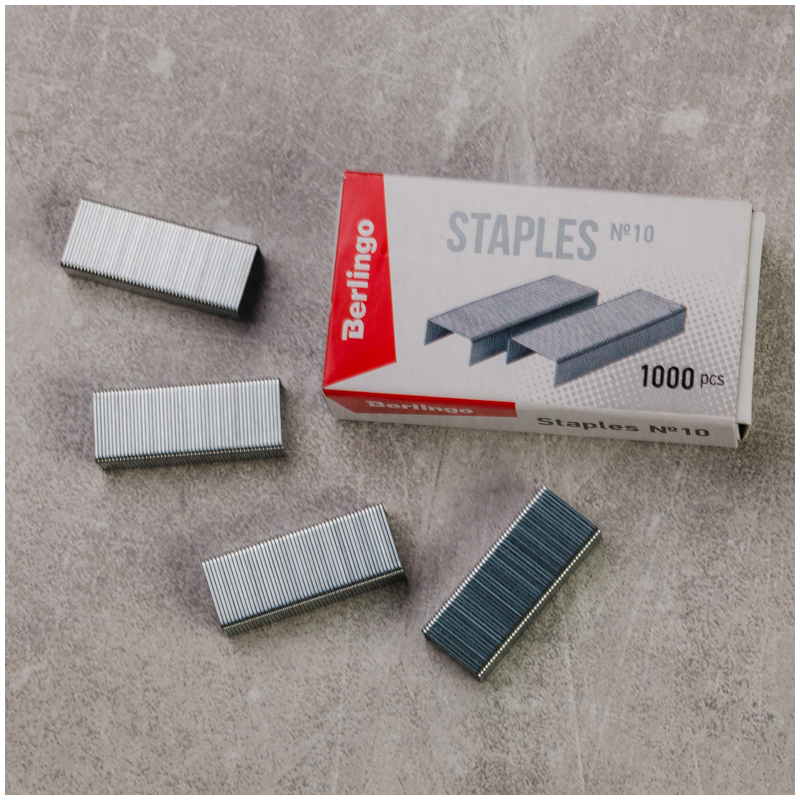 Скобы для степлера №10, оцинкованные, 1000шт., пробивают до 20 листов, Berlingo