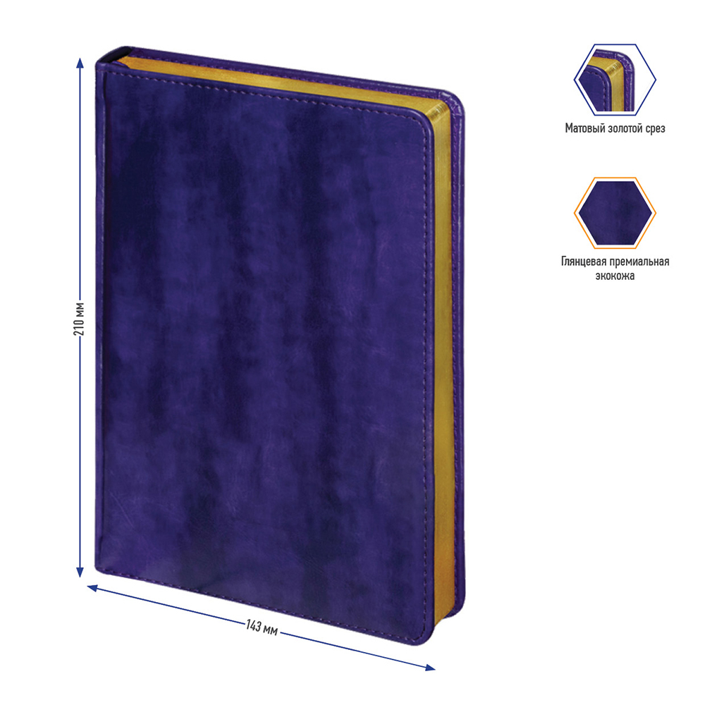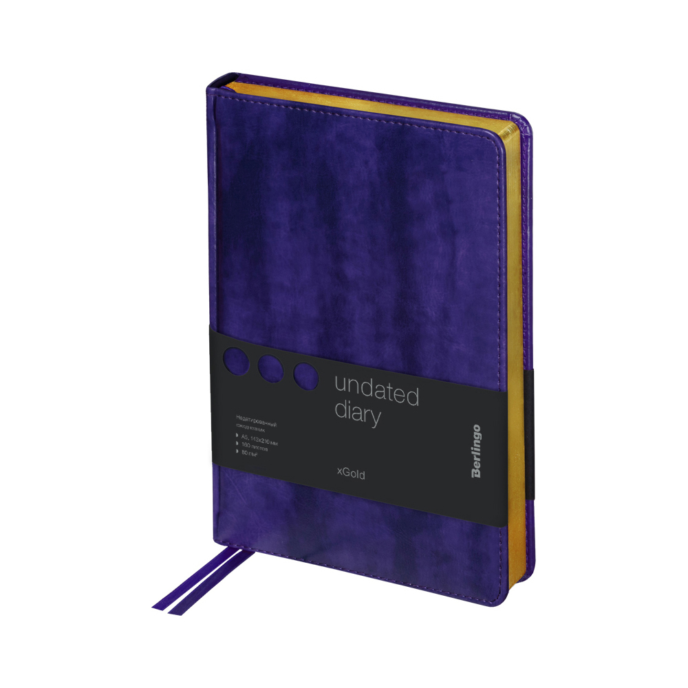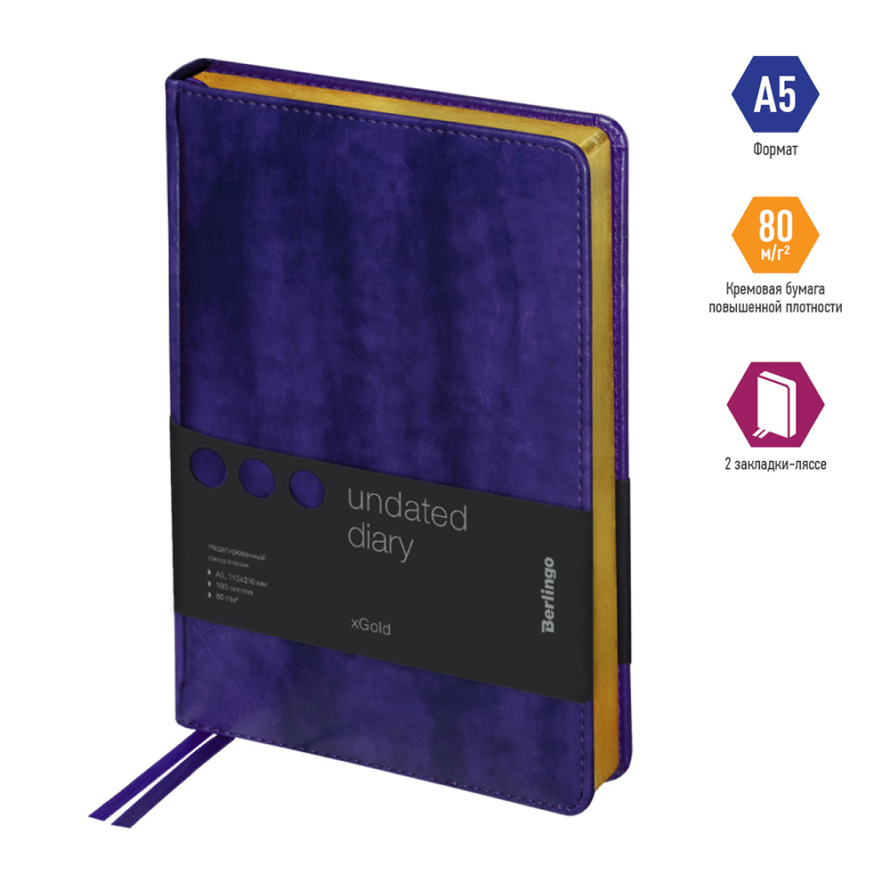 Ежедневник недатированный Berlingo xGold, экокожа, золотой срез, фиолетовый, A5, 160 листов