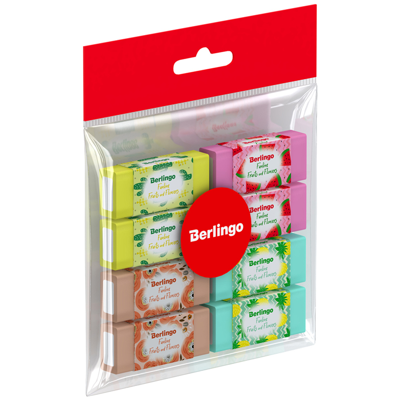 BLc_00400_8 Ластик Berlingo "Funline. Fruits and Flowers", 8 шт, 50*20*11мм, пакет с европодвесом