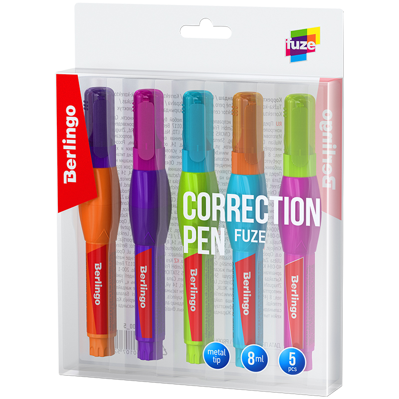 Корректирующий карандаш Berlingo "Fuze", 08мл, металлический наконечник, 5шт в PET боксе