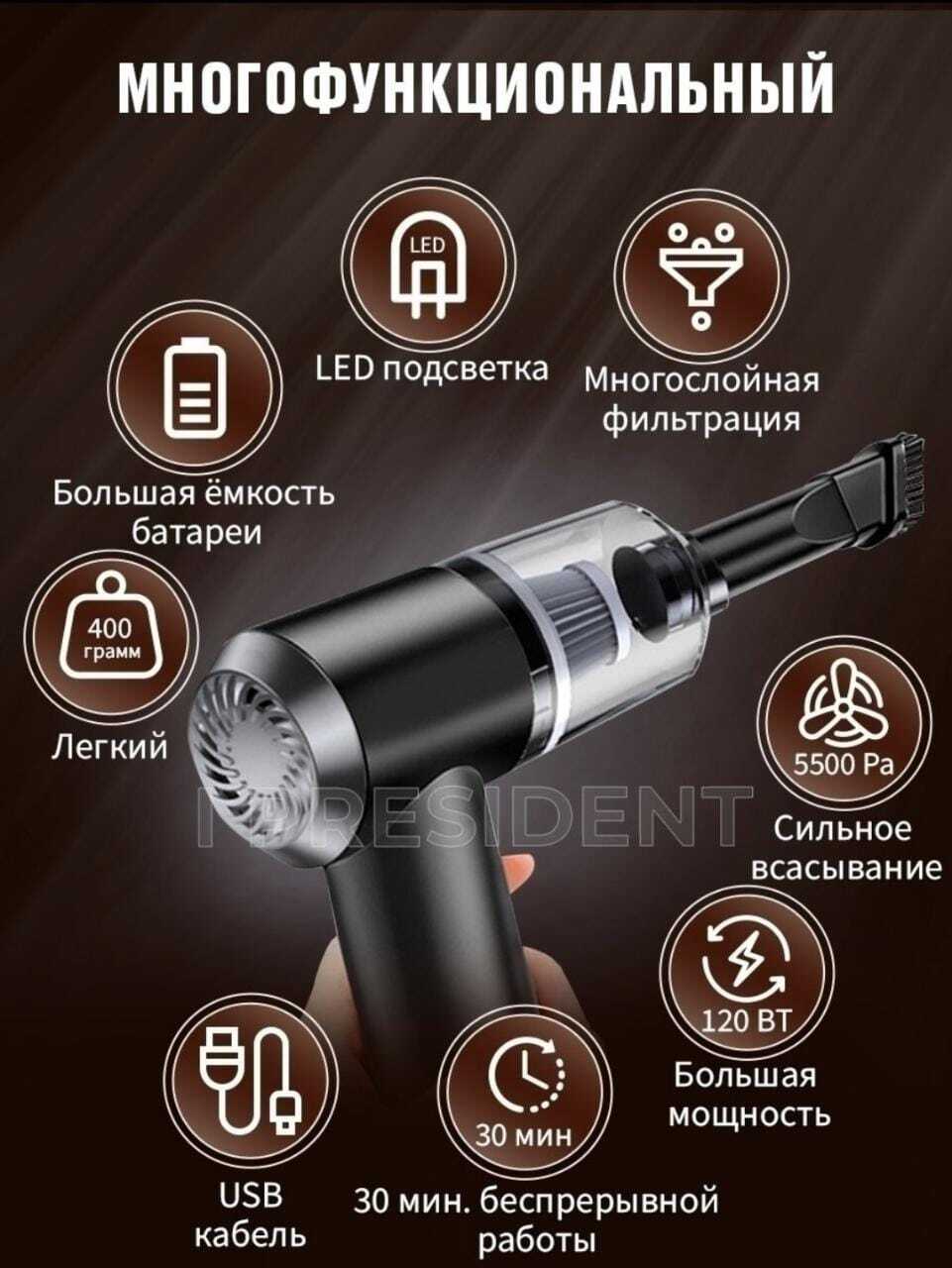Автомобильный пылесос для очистки салона AH-3394 / Ручной пылесос для автомобиля / Автопылесос для машины / Подарок