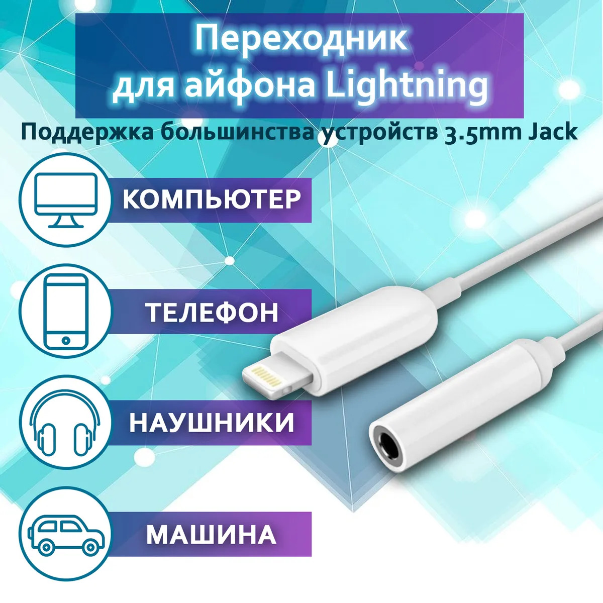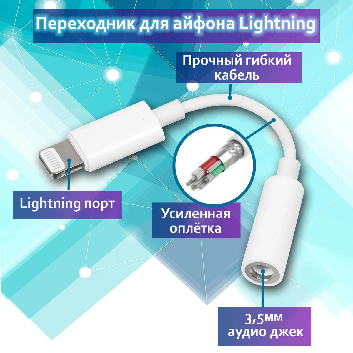 Переходник для айфона lightning/Адаптер AUX для наушников Iphone/Зарядка USB для смартфона