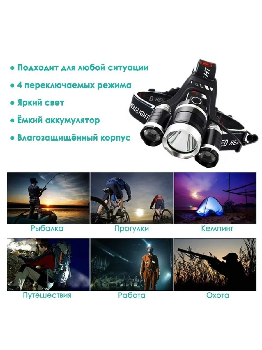 Фонарь налобный,аккумуляторный/Светодиодный,уличный фонарик для спорта,кемпинга,туризма,похода