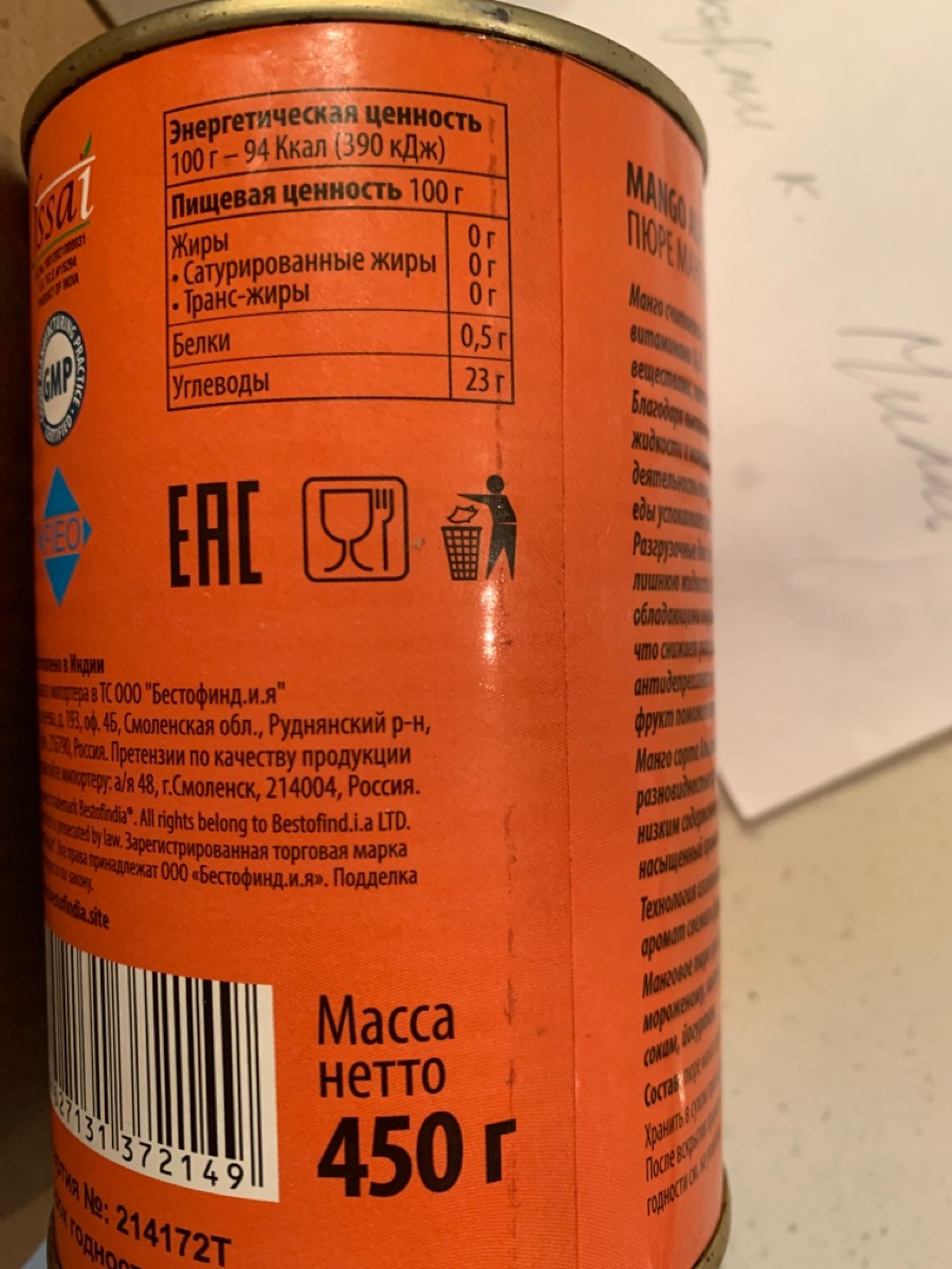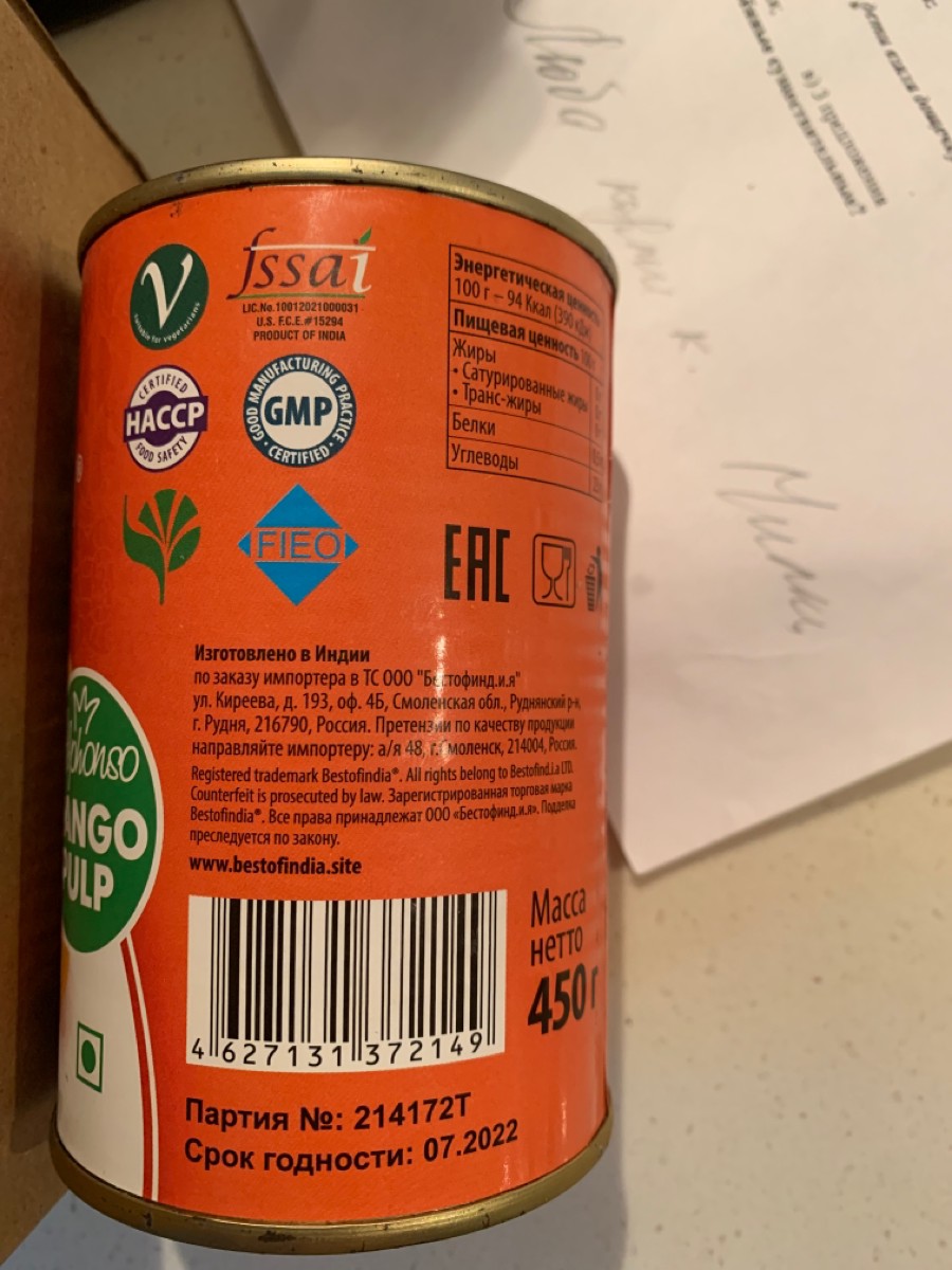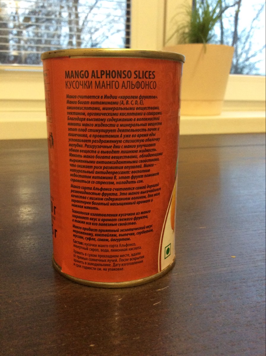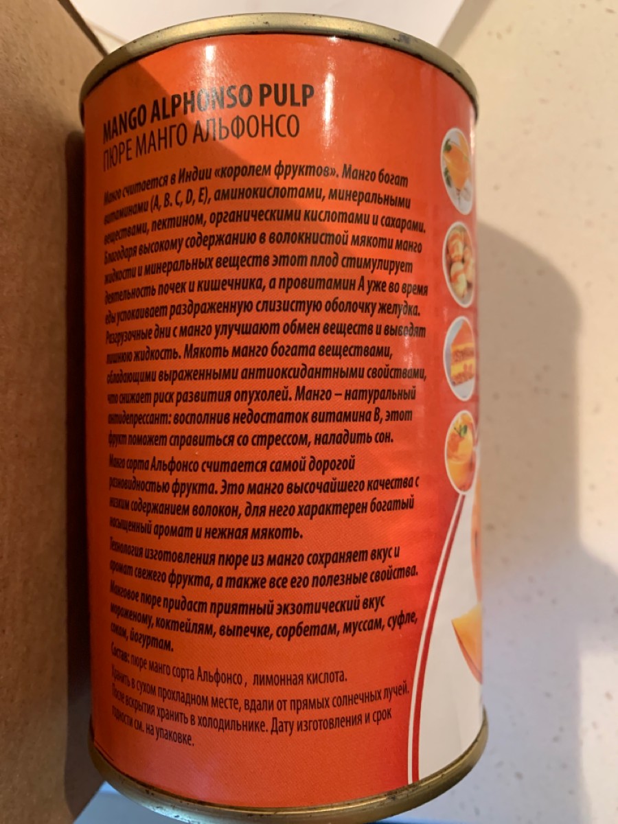 Пюре манго Альфонсо натуральное Без сахара, Sale 4-Pack 4x450г