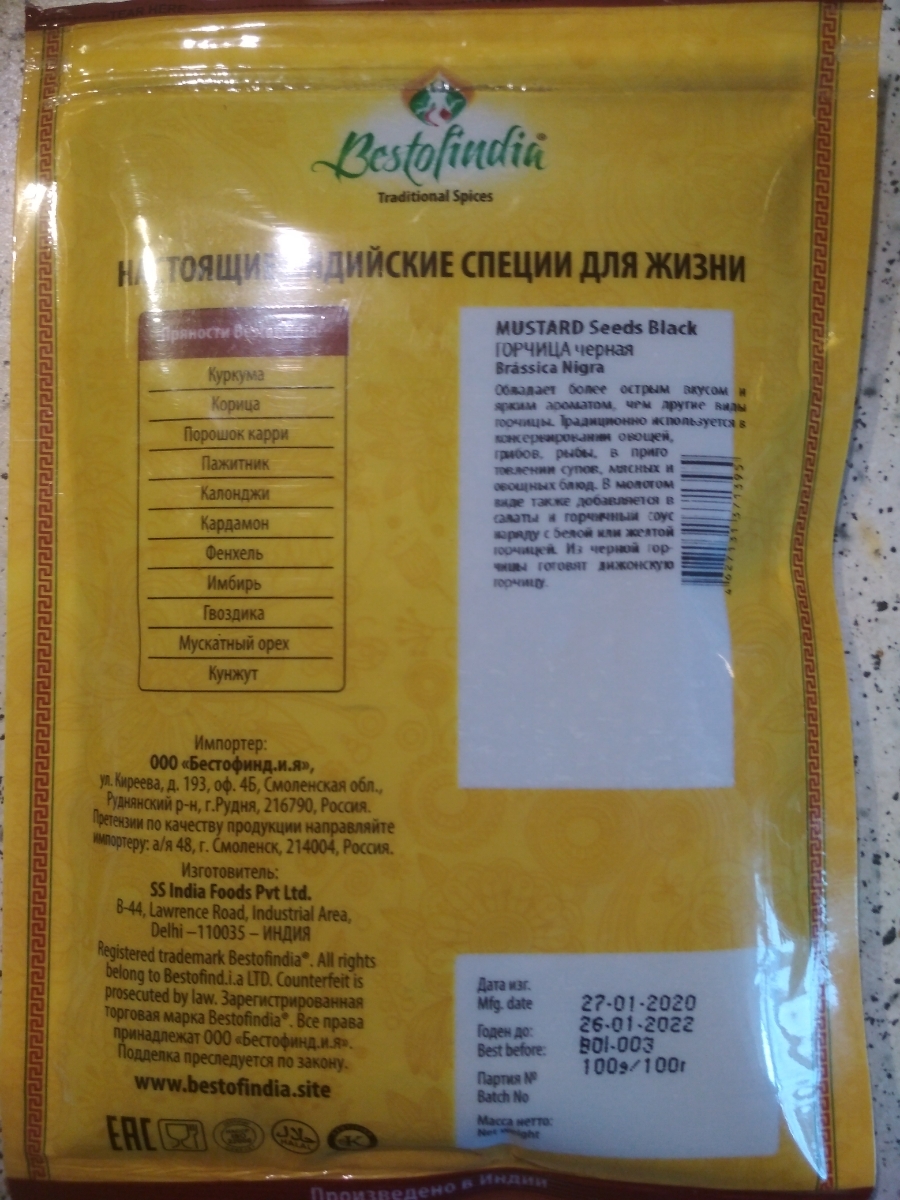 Горчица Черная семена Bestofindia, индийские специи, 100г