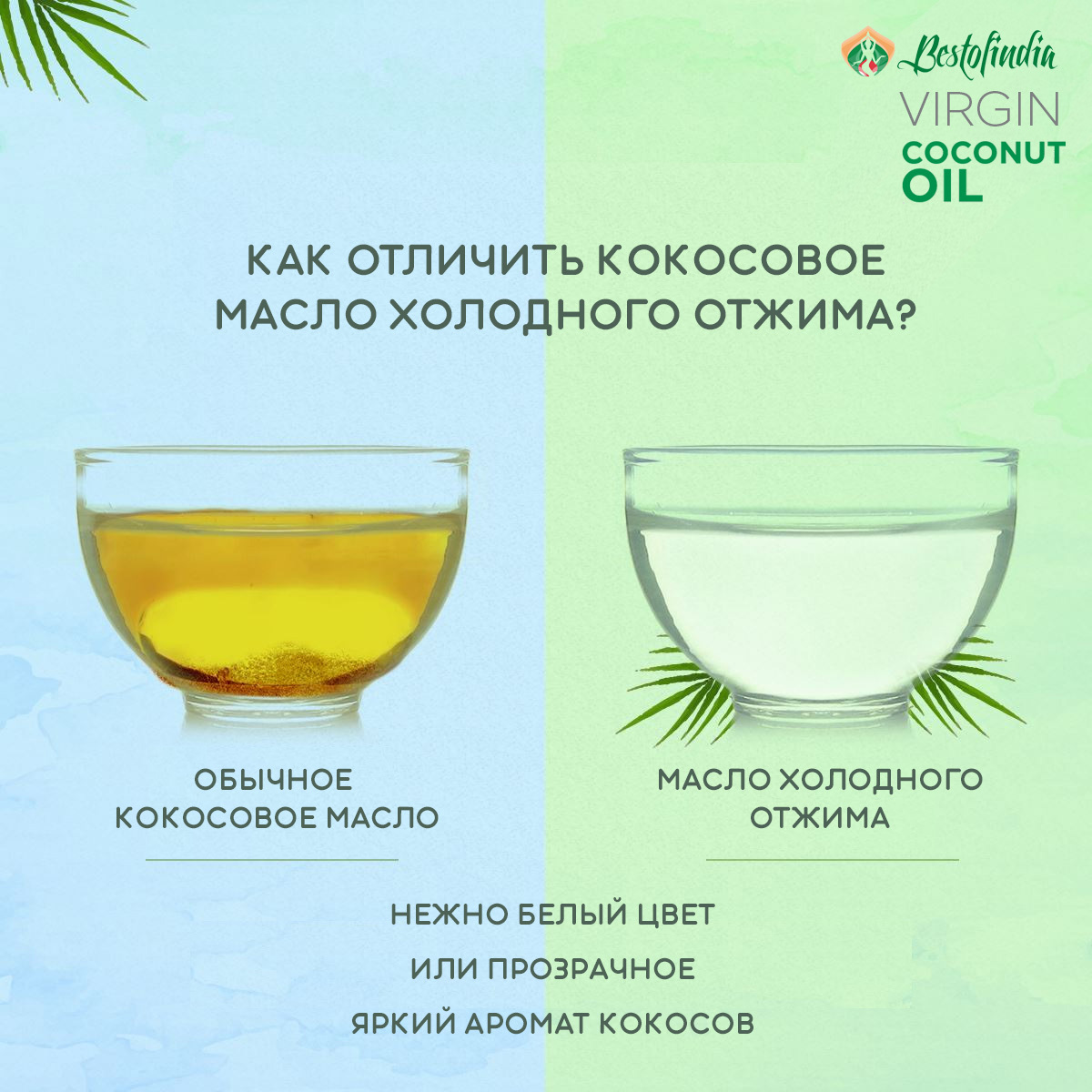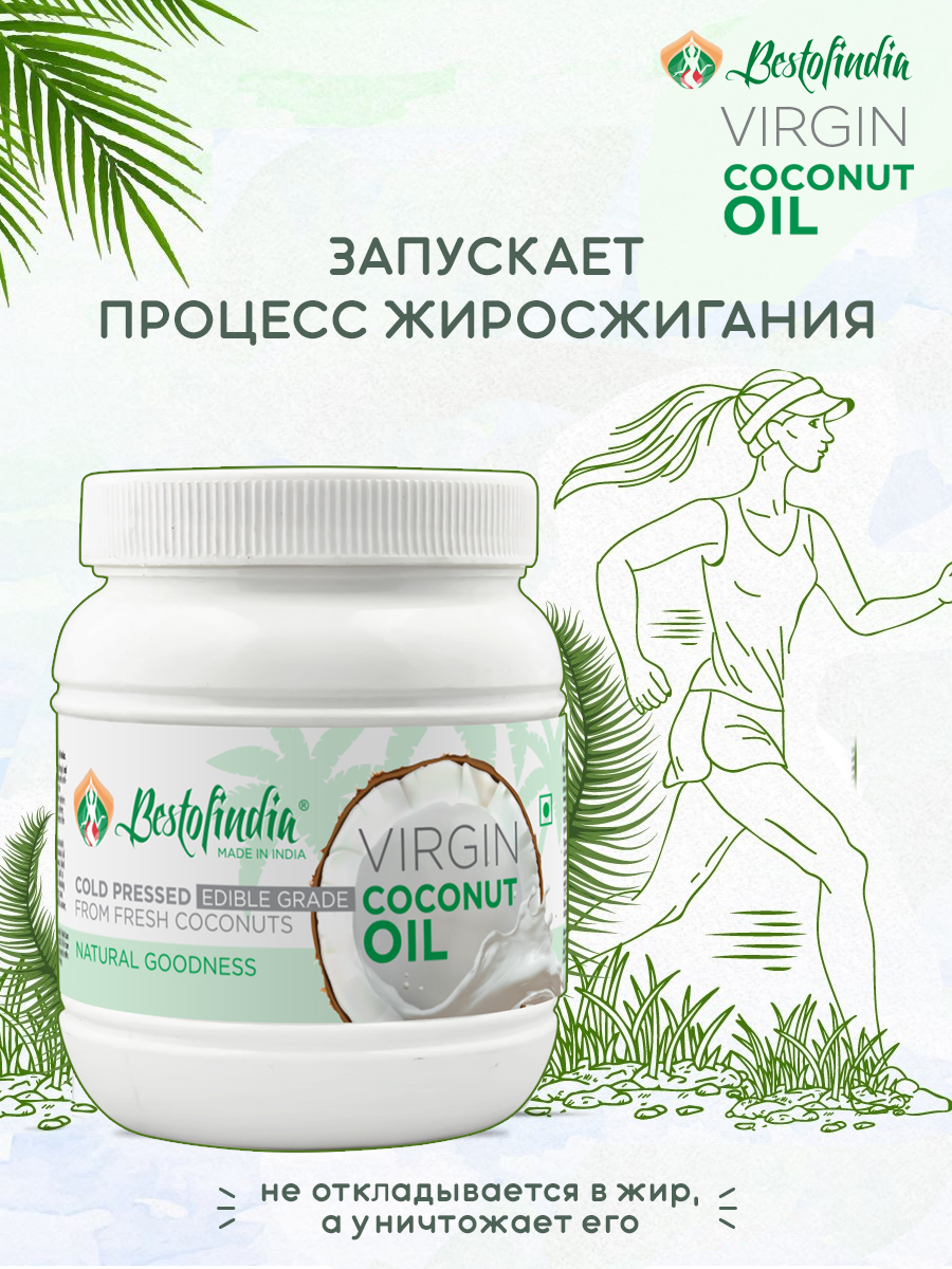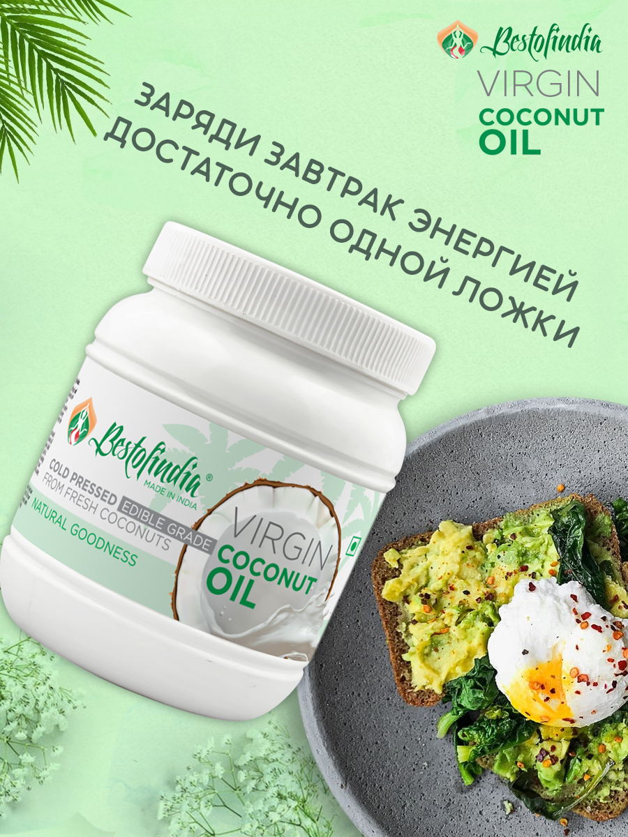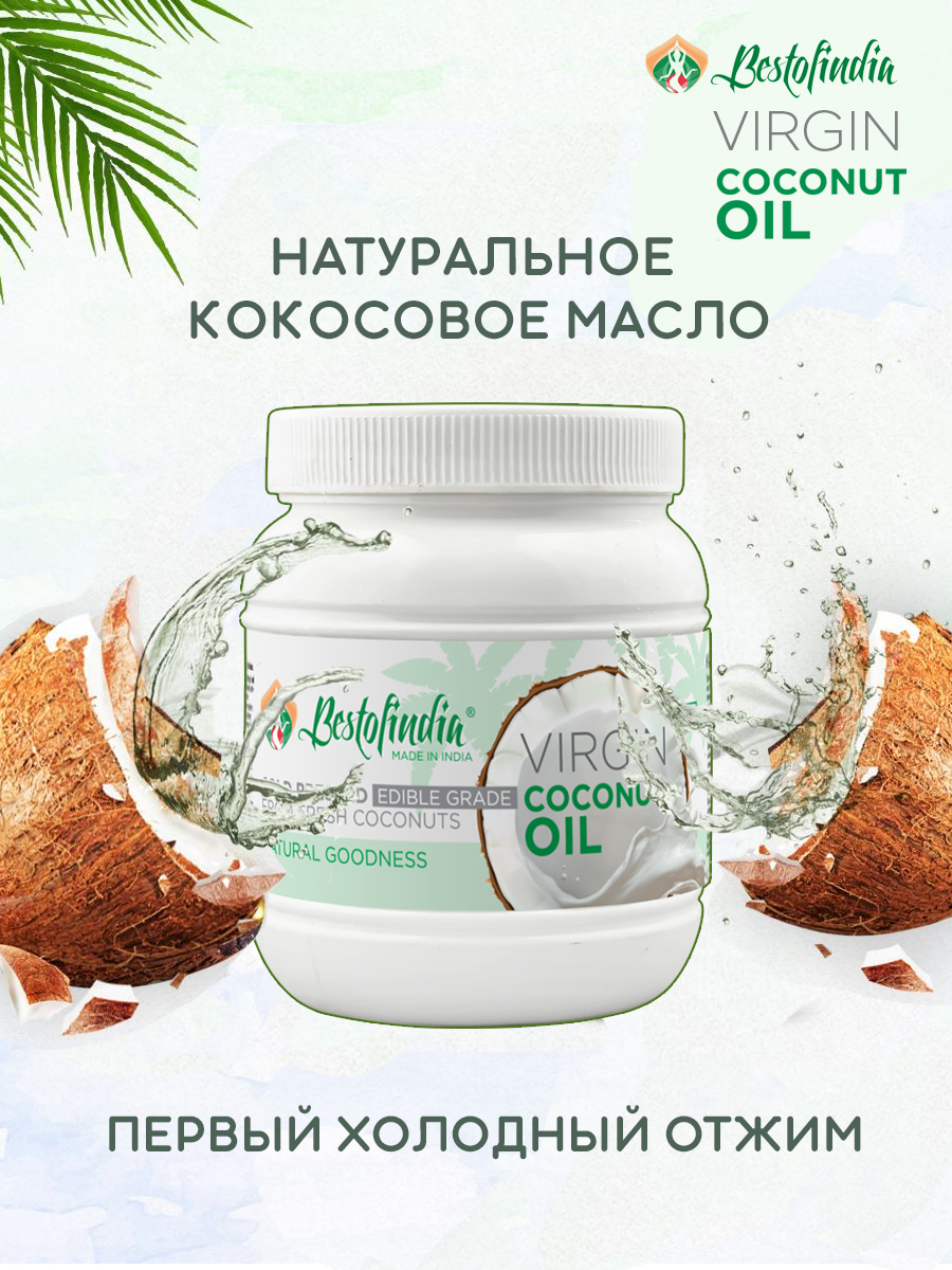 Кокосовое масло пищевое Bestofindia нерафинированное холодный отжим, 500мл