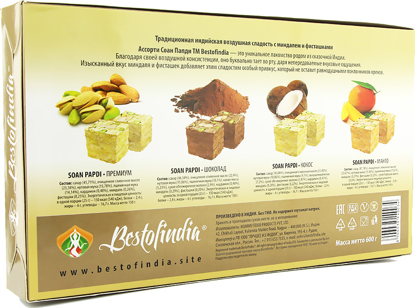 Bestofindia / Соан Папди Ассорти 4в1 воздушные индийские сладости, 600г